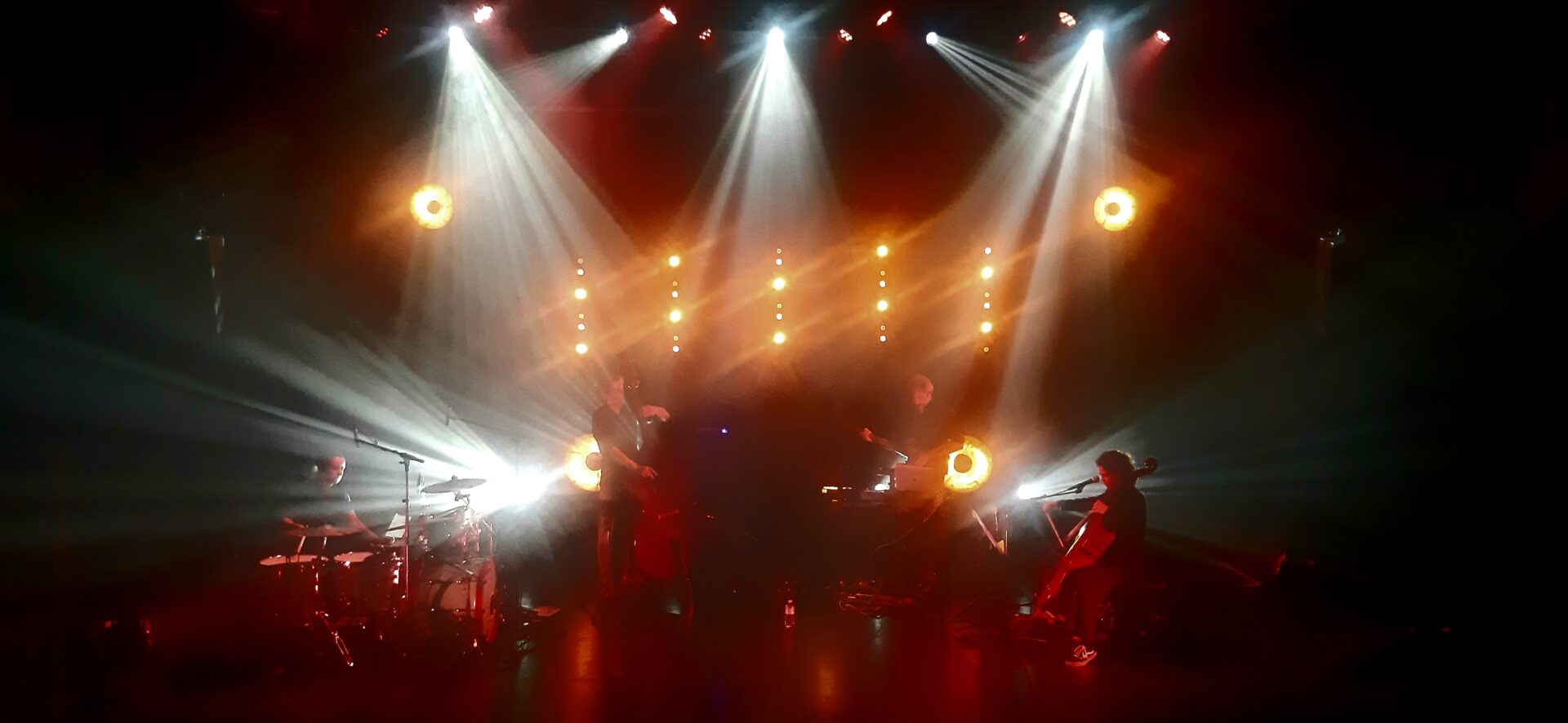 Deze avond werd Gert bijgestaan door topmuzikanten als Hélène Deklerck op de drums, Zjef Van Steenbergen op de double basse en Nelle Bogaerts op de cello. Dat Nelle Bogaerts ook over een uitstekende zangstem beschikt, horen we op het nummer Geysir. Een prachtig nummer dat ons van begin tot einde begeestert, vol met spanning en dreiging wachtend op de geiser die gaat spuiten.