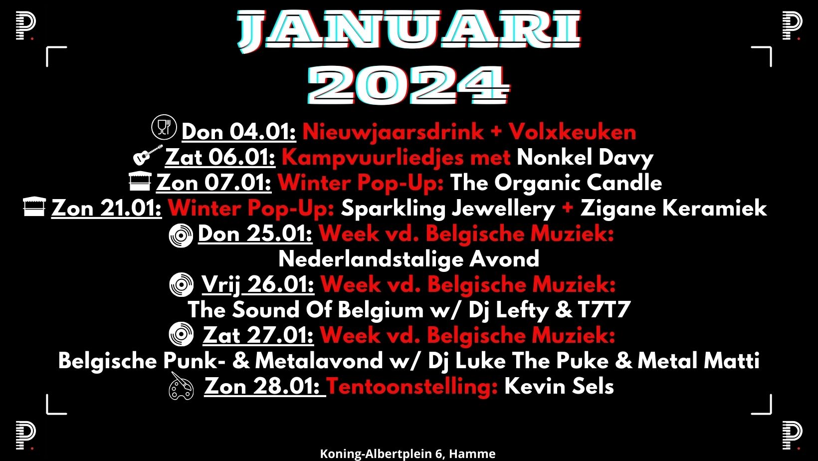 Donderdagavond 25 januari zorgt Tom Moortgat voor de beste Belgische klassiekers. Vrijdag 26 januari ligt de nadruk op de toch wel grote rol van België in de wereldwijde elektronische muziekscène met DJ Lefty & T7T7. Zaterdag 27 januari wordt Belgische punk- en metalavond in Hamme. Dj’s Luke The Puke & Metal Matti zorgen voor de beste underground punk- en metalplaten om er een stevige avond van te maken.