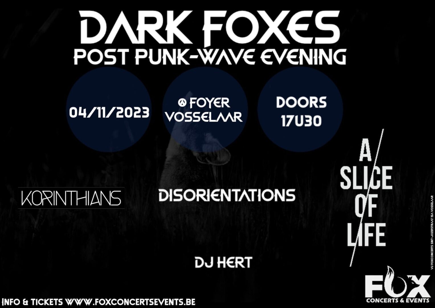 Op 4 november kan je namelijk in cc Reynaert in Vosselaar terecht voor een goed gevulde postpunk- en newwave-avond, met A Slice Of Life, Korinthians en Disorientations op het podium. Drie Belgische bands die garant staan voor de mooiste donkerste deuntjes.