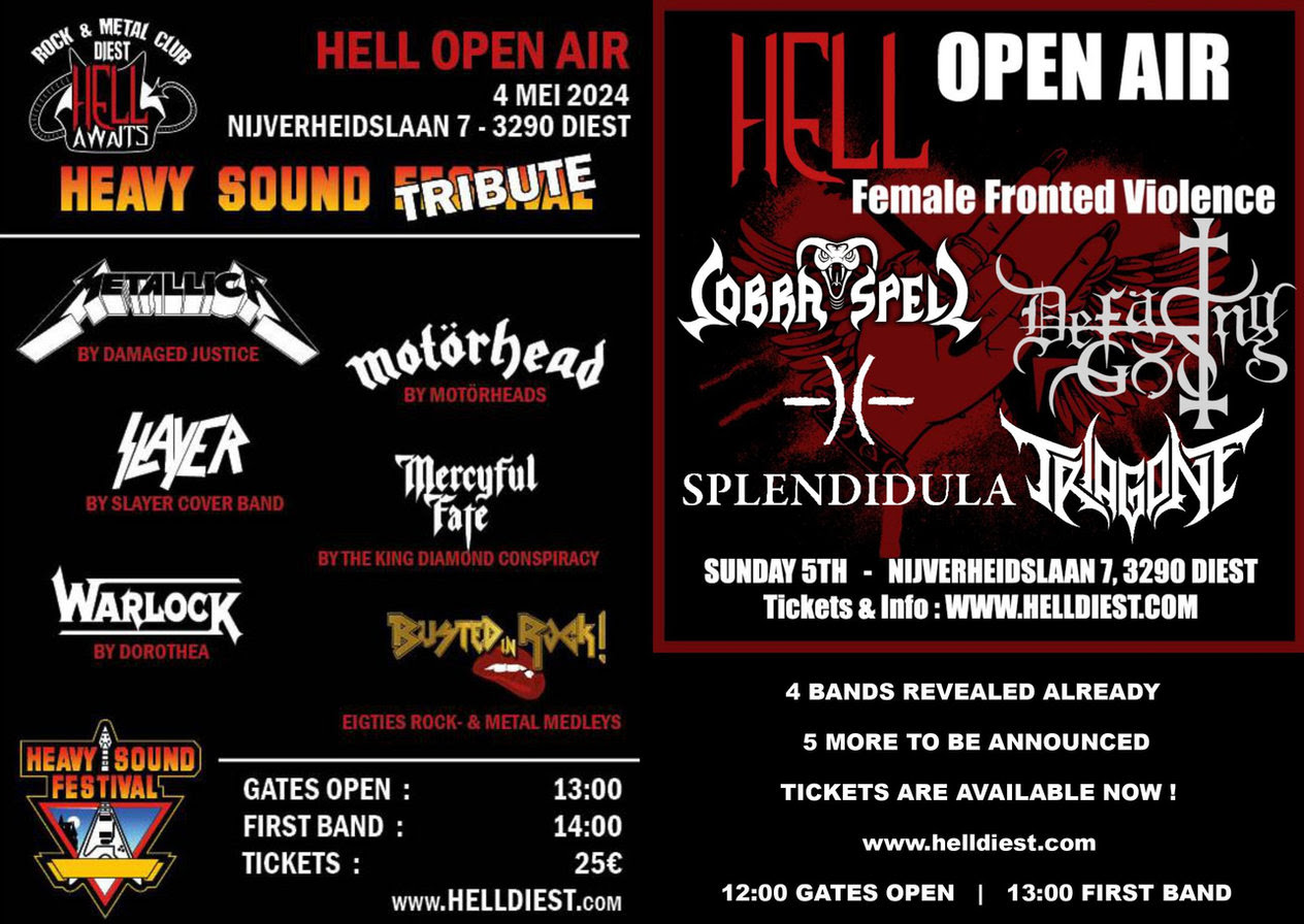 Je laten dopen in de hel? Het kan voor het eerst want Club Hell in Diest presenteert in het eerste weekend van mei, voor het eerst hun festival Hell Open Air. Twee dagen lang dompelen ze je onder in zwaar zwarte deuntjes, die recht naar de hel leiden.