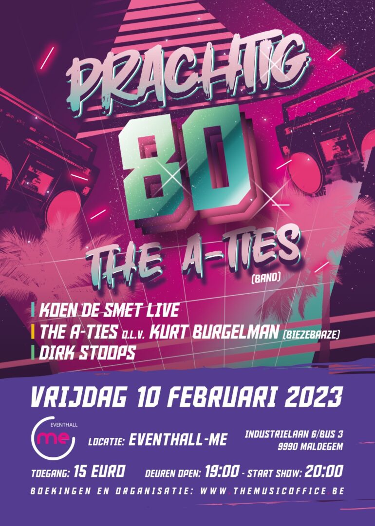 Zin om de jaren tachtig opnieuw in te duiken? Trek dan op 10/02 naar de Eventhall Me op het industrieterrein in Maldegem, Industrielaan 6/ Bus 3. De deuren gaan open om 19 uur en de show start om 20 uur.
