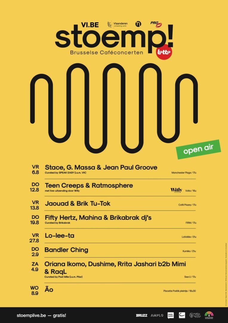 Verse venues, jonge curatoren en een heleboel spannende nieuwe acts in het Brusselse. De open air-editie van dit Stoemp!-seizoen gaat van start op vrijdag 6 augustus op de Manchester Plage van de VK in Molenbeek. De eerste curator, het in lockdown ontstane muzikantencollectief Speak Easy, nodigt niet alleen Stace, G. Massa & Jean Paul Groove uit, maar stelt voor de gelegenheid drie unieke combo’s van Brusselse muzikanten samen.