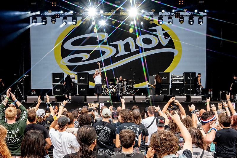 Joyride, The Box, 313,… en dan hoorden we “Come and get it, come and get it, GET SOME!”, wellicht de meest gekende SNOT-zin! Hun bekendste nummer Get Some werd ook luid mee gescandeerd door het talrijk opgekomen publiek. Deadfall en My Balls volgden en naar het einde toe ook Children Of The Grave, als ode aan Ozzy Osbourne. Een ferme dosis ‘poeier’ op dat podium, een energiestoot voor het publiek!
