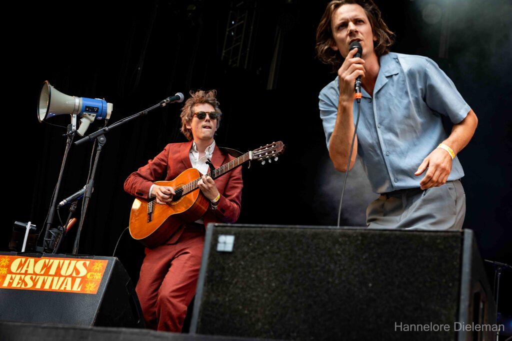 Wat Cactus Festival zo anders maakt dan de andere festivals werd aangegeven door Sylvie Kreusch: er is maar één podium in Brugge. Da’s en voordeel voor de artiest, zo moeten ze geen moeite doen om het geluid aan de andere kant van de festivalweide te overklassen. En een dubbel voordeel voor de bezoeker, want je blijft gespaard van de keuzestress en bespaart je benen de nodige kilometers.