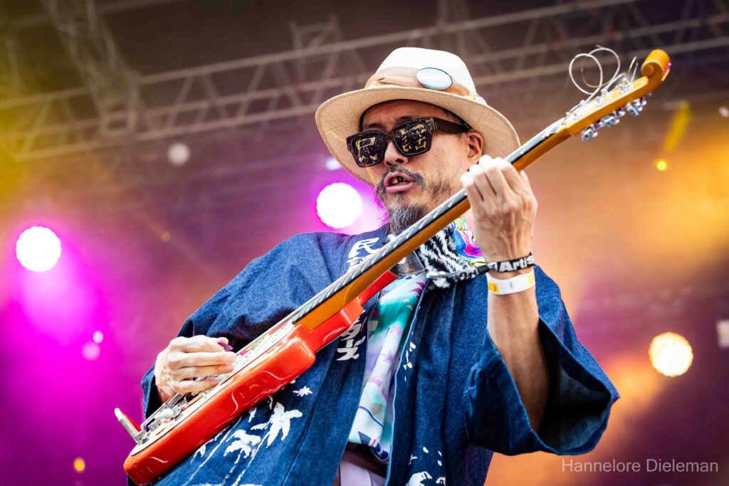 Minyo Crusaders waren ongetwijfeld de vreemde eend in de bijt, hoewel reeds aanwezig op zowel WOMAD als Best Kept Secret. Deze Japanners willen met hun band de traditionele min’yō eren. De wat? Wel dat zijn – met dank aan het programmaboekje van Cactus – folk traditionals die worden gezongen door vissers, mijnwerkers en sumoworstelaars. “Wereldmuziek” dus, ook al hoor je er evenveel Westerse invloeden in.