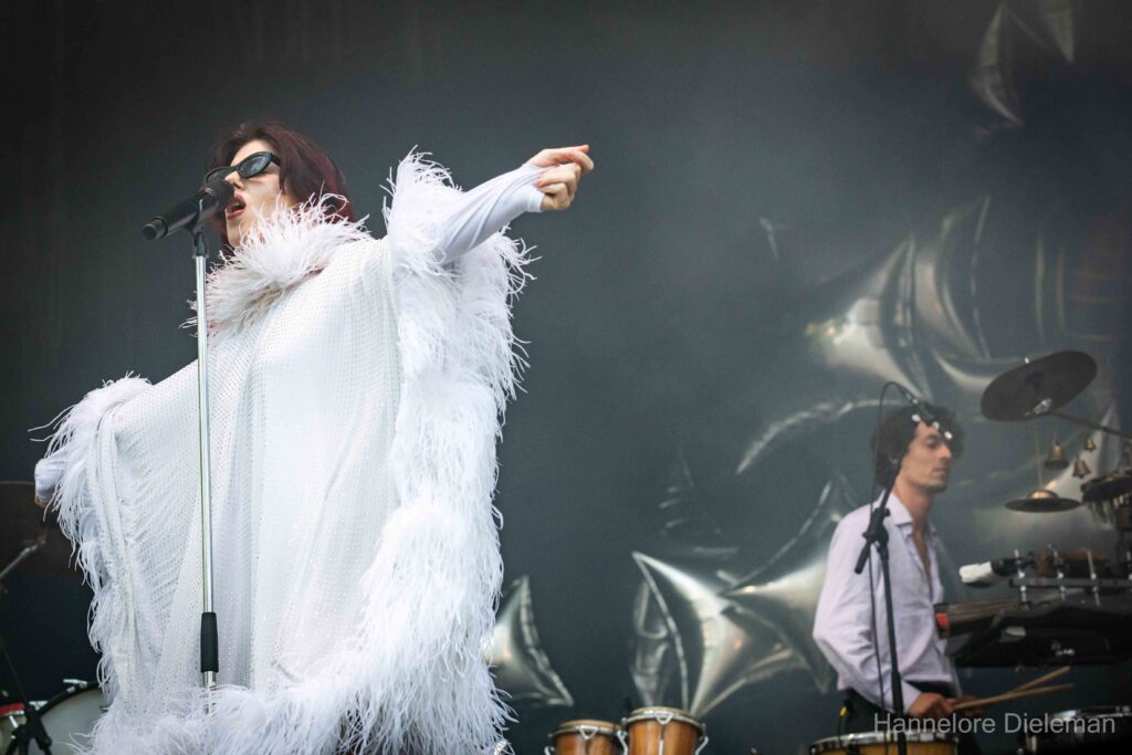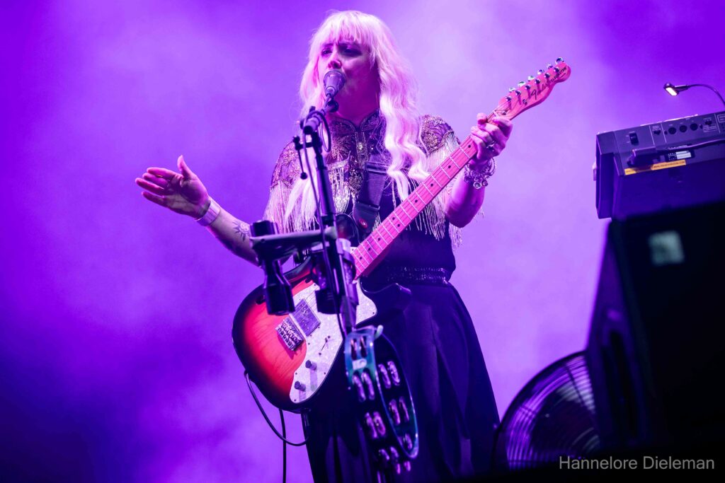Was de eerste dag er vooral één voor Smiths-fans om Johnny Marr aan het werk te zien, dan stonden de dag erna de radars van de meeste festivalgangers gericht op Slowdive. Alvorens we volgens Kirsten Lemaire de mooiste zonsondergang van Brugge zouden meemaken, was het eerst nog de beurt aan een resem andere artiesten. Het begon met de Franse Sophye Soliveau die doelbewust in de voetsporen wil treden van haar grote voorbeelden als Ma Rainey en Bessie Smith. Twee dames die in de jaren veertig een vuist maakten voor gelijke rechten, vrije vrouwelijke seksualiteit en emancipatie. Jammer genoeg is er bijna een eeuw later nog even veel aandacht voor nodig. Als troostprijs levert het wel mooie muziekjes op. Het was zeker geen sinecure voor de Franse om op een onmogelijk uur een publiek te boeien, maar iemand moet de eerste zijn. Misschien het soort act dat je eerder op Gent Jazz zou verwachten, maar de eerste festivalgangers die de blakende zon trotseerden, genoten volop. Wat ons betreft mocht er best wat meer variatie in de set, maar indruk maken met haar stem – en harp! – deed ze wel.