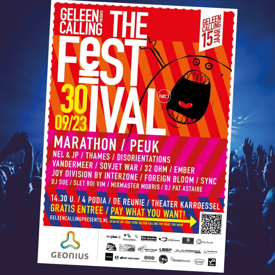 Op de vier podia in De Reünie en Theater Karroessel kan je er op 30 september Marathon, Peuk, Nel & JP, Thames, Disorientations, Vandermeer, Sovjet War, 32 Ohm, Ember, Joy Division by Interzone, Foreign Bloom, Sync, dj Sue, Slet Boi Vim, Mixmaster Morris en dj Pat Astaire aan het werk zien!