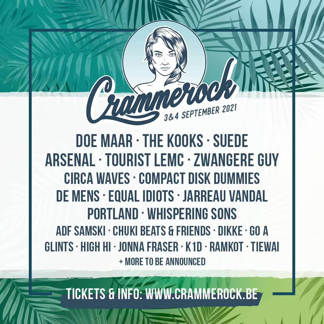 Vandaag lost Crammerock de eerst 23 klinkende namen: Doe Maar, Suede, The Kooks, Arsenal, Whispering Sons, Circa Waves, Compact Disk Dummies, Tourist Le MC, Zwangere Guy, Glints, Chuki Beats, K1D, Dikke, Tiewai, Portland, Equal Idiots, High Hi, Ramkot, De Mens, Jarreau Vandal, Jonna Fraser, ADF Samski en Go A.