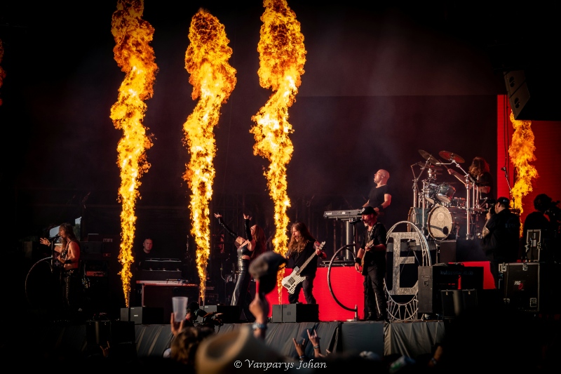 Hoogtepunt was het moment waarop toetsenist Coen Janssen met zijn roterende keyboard dwars door het publiek trok, wat zorgde voor een speelse connectie tussen band en fans. Ondertussen was het podium een spektakel op zich: vuur, rook en theatrale vlammen zorgden voor een visuele krachttoer. Songs als The Essence of Silence, Unchain Utopia en Beyond the Matrix brachten de tent in beweging. Afsluiter Consign to Oblivion deed de moshpit ontploffen, begeleid door massaal meegebrul.