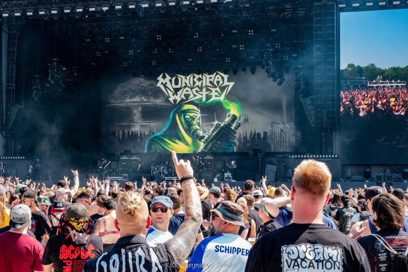 Wie dacht dat het nog rustig op gang zou komen, werd ruw gewekt door Municipal Waste. De Amerikanen openden met elf spijkerharde tracks vol party thrash, humor en chaos. Frontman Tony Foresta liet het publiek geen moment los, met snedige one-liners en dollende interacties. De moshpits draaiden al op volle toeren, en de toon voor de rest van de dag was gezet.