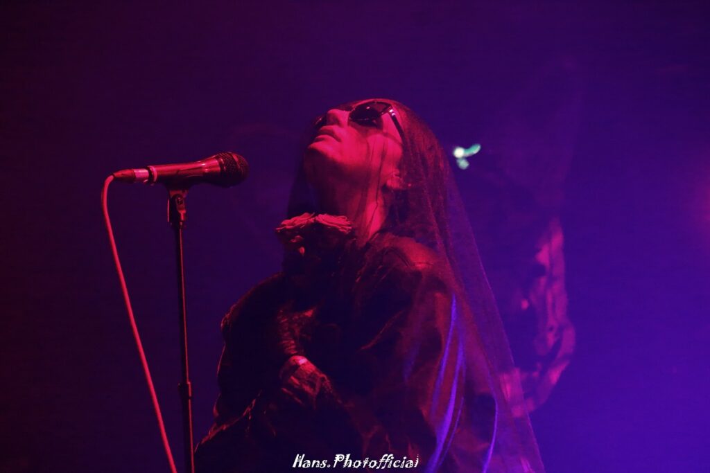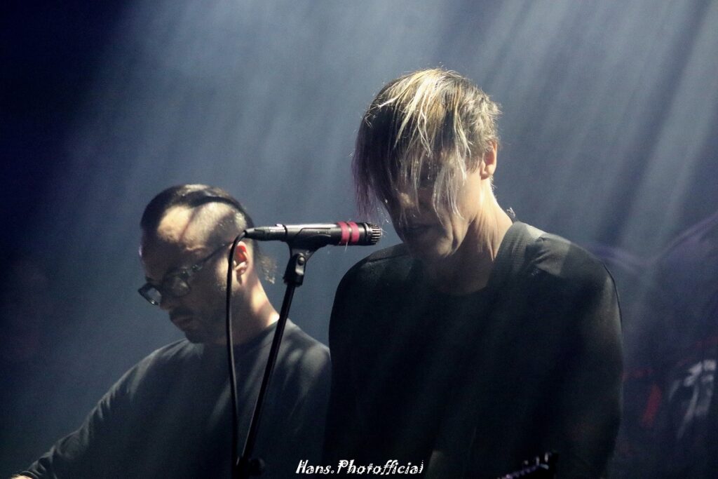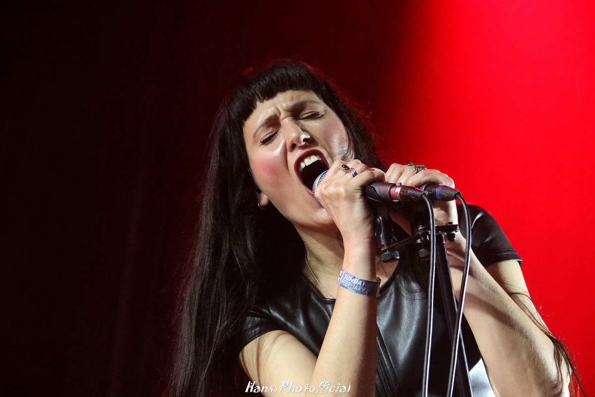 Techno noire uit Paris, mon dieu! Als dat maar goed afliep. Maar dat is zonder de waard gerekend en die waard is dus een adembenemend duo dat al ruim 10 jaar een koppel is, Pauline Alcaïdé en Hugo Sempé. Zoals NNHMN een dag eerder, hadden ze op het ruime altaar weinig plaats nodig om de kerk naar hun hand te zetten. Een laptop en enkele modulaire synths voor Hugo, en twee microfoons voor Pauline. Ça suffit! We zijn niet al te fel onder de indruk van Sang d’Encre dat in oktober verscheen, maar live is dat toch altijd een ander verhaal. Eentje over EBM, techno, synthpunk en poëtische Franse teksten.