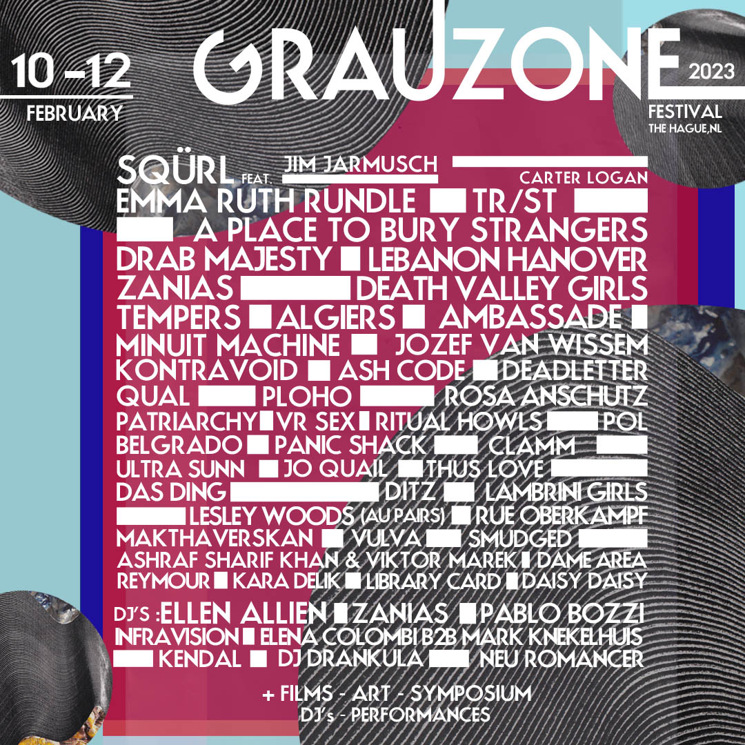 Van vrijdag 10 tot en met zondag 12 februari 2023 vindt de tiende jubileumeditie van Grauzone plaats in Den Haag. Het muzikale deel van het programmma werd aangevuld met 15 nieuwe bands, van techno tot postpunk.