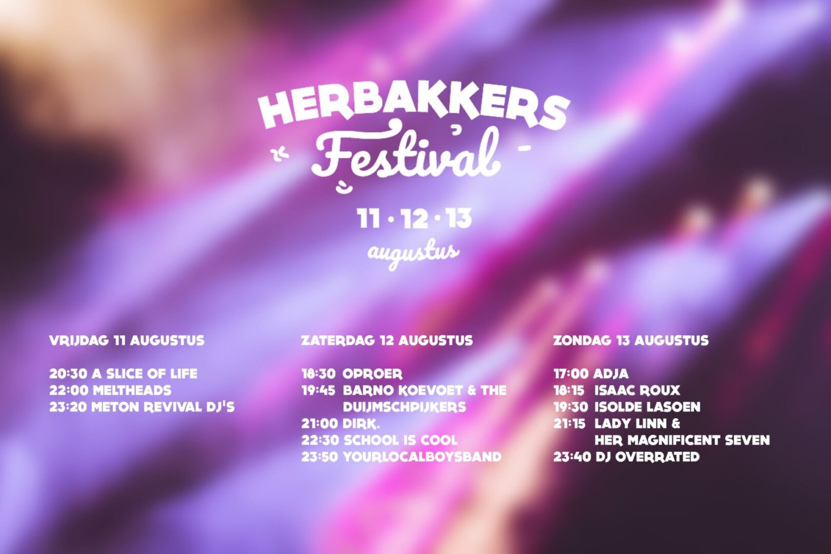 Het Herbakkersfestival in Eeklo is hét event waar de beste bands en muzikanten samenkomen op de ondertussen vertrouwde festivalsite aan de Blokhutten. Het feest barst vanaf vrijdagavond los.