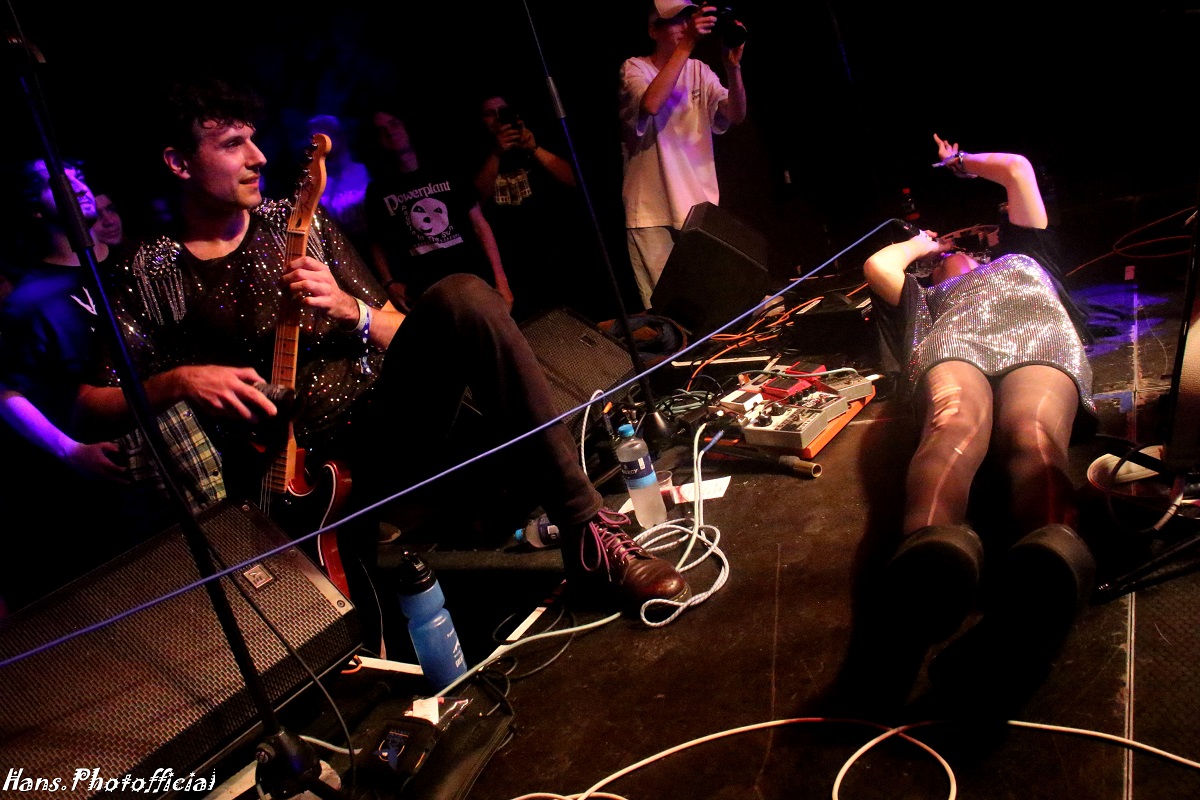 De buurt van het Centraal Station was traditioneel een mekka van 6 clubs en zaaltjes. Op het podium van Perron Small werden we aangenaam verrast door een vinnig en energiek Cosmorat. Het is de vanuit Londen opererende band uit het Amerikaanse Boston van zangeres en gitariste Taylor Pollock en gitarist Olly Liu. Humor was een optreden lang niet weg te denken en het begon al met de subtitel op de setlist onder “Cosmorat Rotterdam sets”. Daar stond immers “I will eat many stroopwafels”.