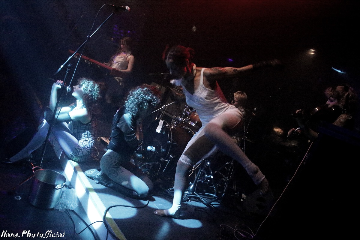 Puur op basis van de klederdracht kunnen we snel een link leggen met The New Eves en The Last Dinner Party, maar waar de eerste band te folky is vergeleken met WIP is de andere te gepolijst. Als we de muziek puur ontleden horen we een heel uniek geluid dat zeker kan gelinkt worden aan obscure postpunk, aan Anna Von Hausswolff, Kate Bush en PJ Harvey. Anna omdat er constant spanning wordt opgebouwd, Kate omwille van de frivole hekserij in beeld en klank en Polly omdat het gitaargeweld van Scarlett en Tonia daar vaak mosterdzaadjes geplant leek te hebben. Meestal filmen we fragmenten van optredens maar nu kwam die gedachte nooit in ons op omdat het simpelweg allemaal te spannend was. Hun optreden leek heus een tocht door het vagevuur.