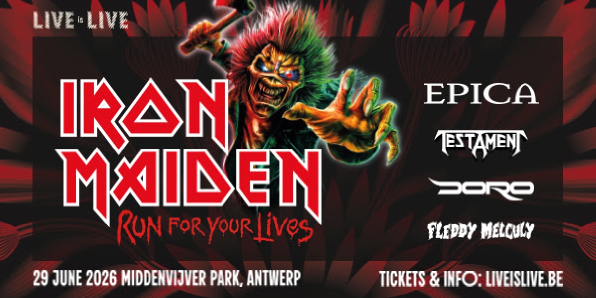 Op 29 juni 2026 komt Iron Maiden naar het Middenvijver Park in Antwerpen. De legendarische show wordt aangevuld met optredens van topacts: Epica speelt verder hun enige Belgische show van 2026 en neemt het publiek mee in een meeslepende symfonische rockshow; de Amerikaanse thrashlegendes Testament laten de riffs ongenadig spreken; Doro, de iconische metal queen, staat garant voor krachtige vocale momenten; en het Belgische collectief Fleddy Melculy zorgt voor een energieke en onvergetelijke live-performance.