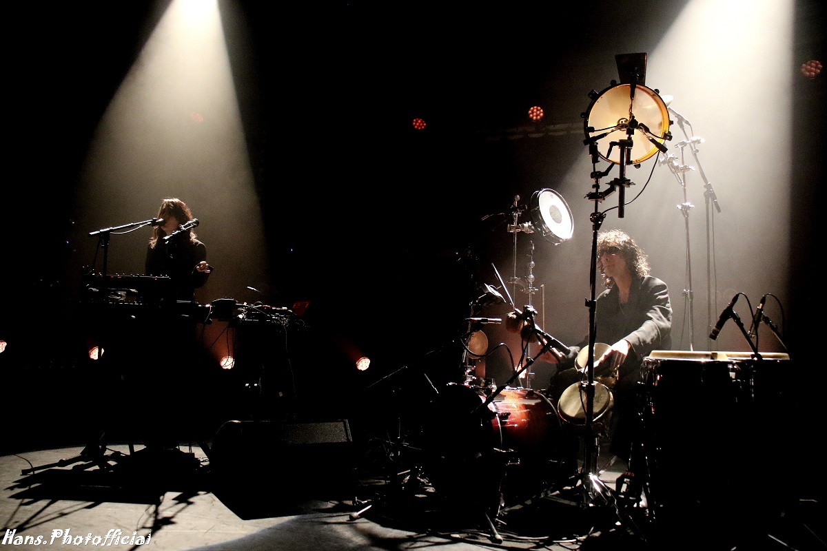 Alex kon zich al meteen uitleven op zijn drums die quasi geen vergelijkingspunt hebben met een normale drumkit. We zagen een bonte verzameling Afrikaanse percussie-elementen en een constructie in de lucht met een ronddraaiend rad en een doorzichtig drumgedeelte. Veel percussie werd al strelend en tokkelend uitgevoerd en veel subtiele geluiden werden door minimale aanrakingen gecombineerd met de warme spaarzame elektronica van Lucrecia. “The vision shows us that time is spiraling out of control. Love and strife are the two singular states dominating the wheel of time”. Enviada was live behoorlijk indrukwekkend. Het klonk als David Lynch die een Zuid-Amerikaanse variant op Twin Peaks moest schrijven. Dalt klonk hier vocaal zwoel en mysterieus. Het gros van de set kwam van de recente plaat maar de volgorde werd danig omgegooid.