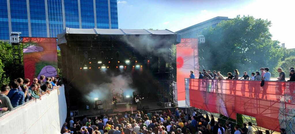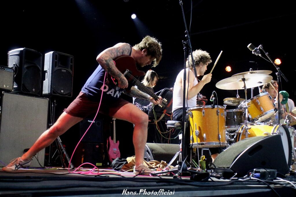 Eerst Peuk. 18 uur op een vrijdagavond op het grootste podium van het festival. Onmogelijke opdracht, denk je dan, maar vanaf de eerste noten Drunk ‘n Caravan stond het plein vol. Van een zware moshpit, crowdsurfen of een circle pit was nog wel geen sprake, maar vanaf de eerste trap had het trio door dat het een gewonnen match zou worden. Dat zagen ze aan de talloze Peuk-t-shirts waarmee ze deels stonden te spelen voor een vertrouwde fanbasis – en die heeft Peuk in overvloed! – en nieuwe nieuwsgierigen. Of gewoon fans van zonder t-shirt, kan ook! Het luide applaus na elk nummer sprak in ieder geval boekdelen.