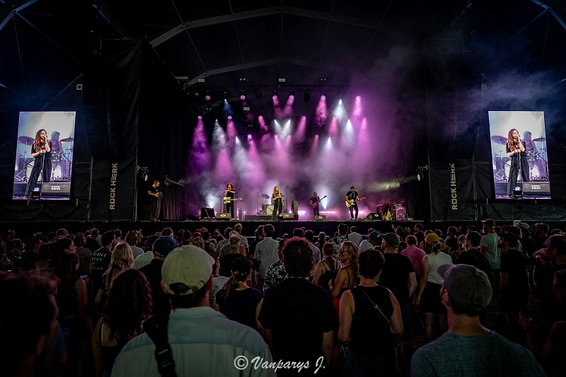 Alice Mae schitterde op de Main Stage van Rock Herk 2025 met een krachtige en authentieke live-set. De West-Vlaamse singer-songwriter – ook bekend als Alexia, winnaar van De Nieuwe Lichting – bracht een mix van stevige rocknummers en persoonlijke indie-gevoeligheid, ondersteund door een gedreven liveband.