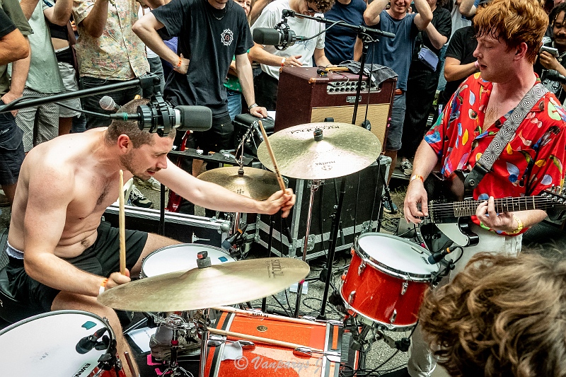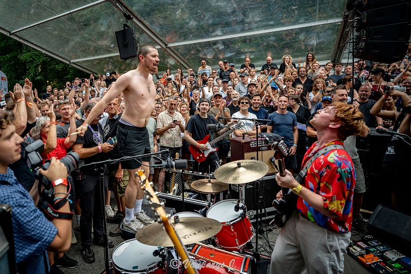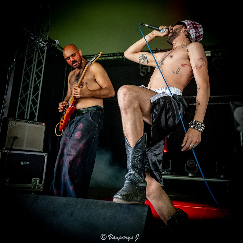 Wie toevallig voorbijkwam, werd meegezogen in een wervelwind van loeiharde gitaren, moshpits en uitzinnige energie. Het duo bewees dat je geen grote podia nodig hebt om groots uit te pakken — enkel een versterker, een drumstel en een publiek dat klaar is om te ontploffen.