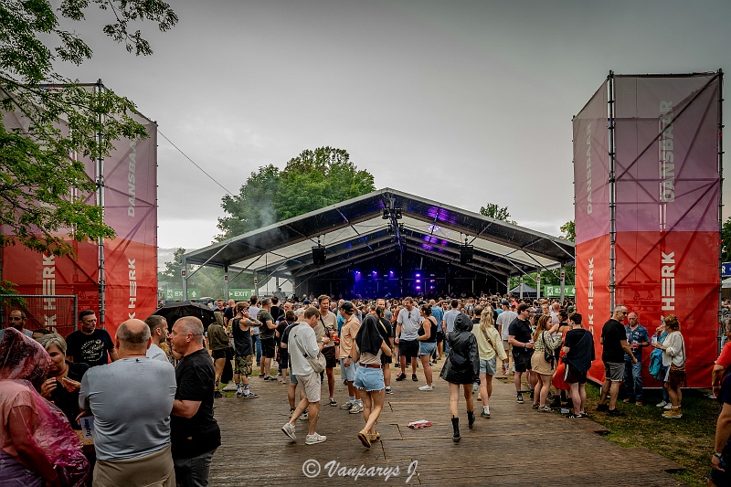 Op de tweede dag van Rock Herk 2025 kwam het festival in volle bloei: drie podia met livemuziek overspoelden het terrein met fuzzrock tot hyperpop, maar ook de ‘Dansbaar’ speelde haar rol als volwaardig vierde platform.