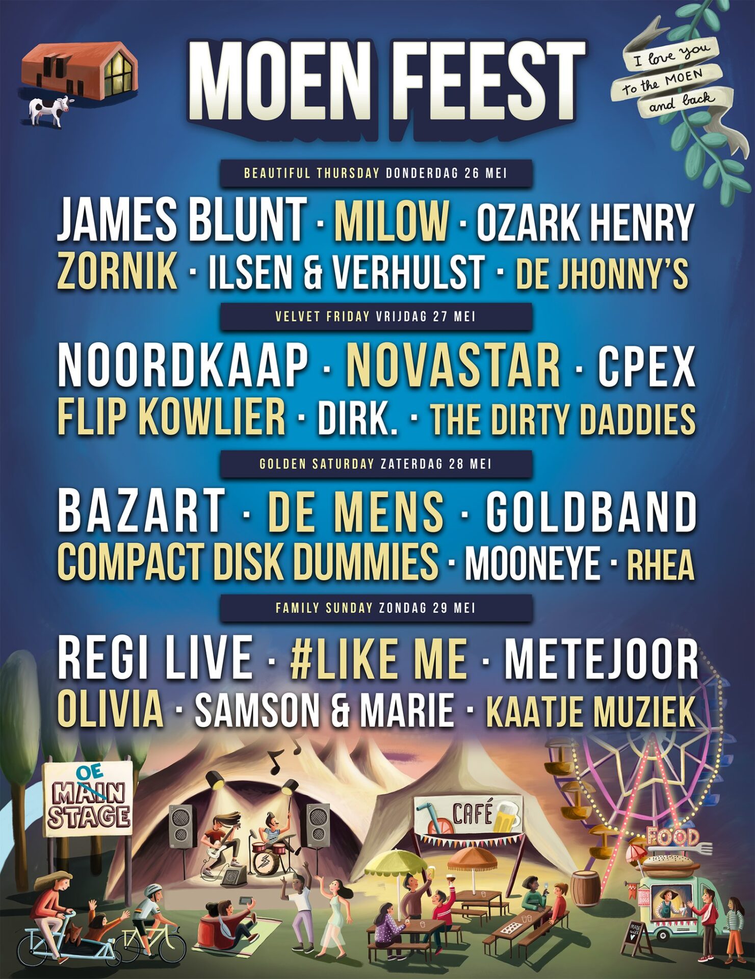 Moen Feest wil na 2 jaar corona kommer en kwel ook extra inzetten op festivalbeleving. De optredens vinden plaats in een tent. De buitenzone heeft een speelse en wonderlijke uitstraling. Zo is er dit jaar een reuzenrad, een dj stage, een foodtruck zone, enkel pop-up bars en restaurants. Tickets voor het festival gaan komende zaterdag om 18u in verkoop op www.moenfeest.be.