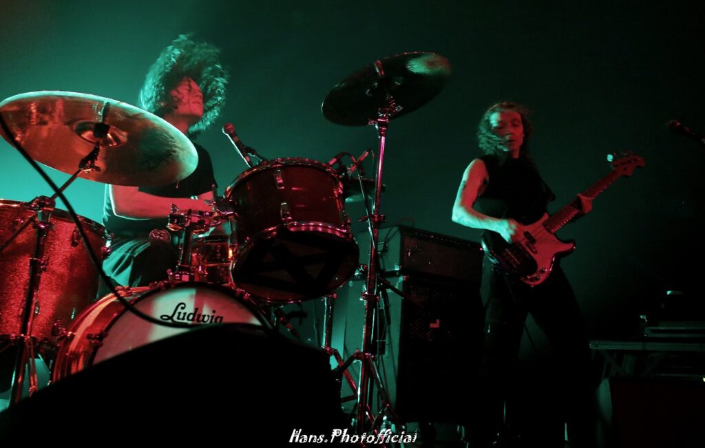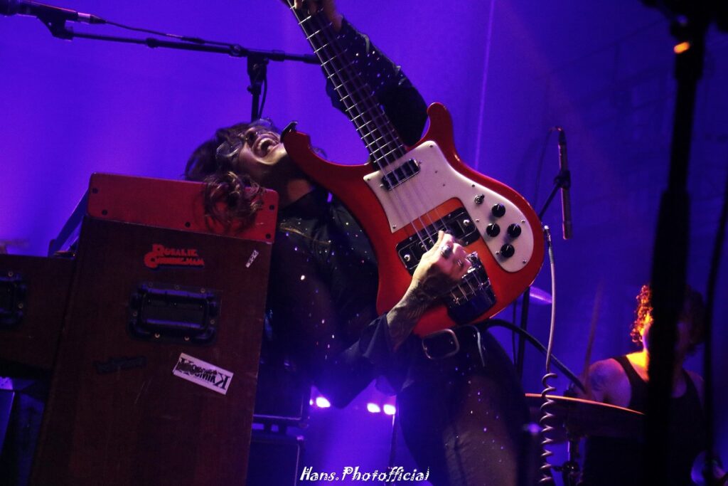 Wat zich het volgende uur in de Orangerie afspeelde bij The Schizophonics grensde aan het bijna onwaarschijnlijke. Je had er moeten bij zijn om het te geloven. Frontman en zanger/gitarist Pat Beers en zijn drummende echtgenote Lety Beers uit San Diego, Californië, vormen sinds 2009 de vurige kern van de band, en hebben sindsdien honderden shows gespeeld over de hele wereld. Dat is best het vermelden en meerdere medailles waard als je ziet wat Pat op een podium presteert. Live laten ze zich begeleiden door bassiste Sarah Linton die we in 2024 nog zagen bij de Death Valley Girls. Wat is dit een kleine wereld want wie was daar toen drumster? Rikki Styxx, onthou de naam deel twee…