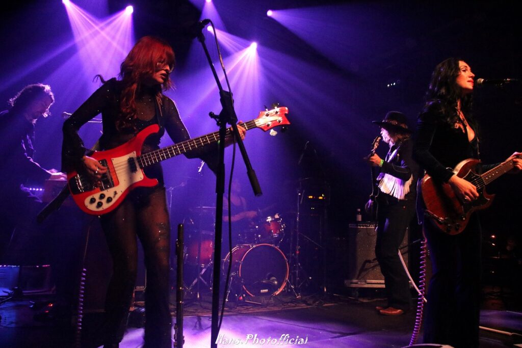 Een band waarnaar we hard uitkeken was die van Rosalie Cunningham. De 35-jarige Britse uit Southend-On-Sea, Essex, zowat 70 km ten Oosten van Londen, startte op 17-jarige leeftijd de band Ipso Facto en in 2011 richtte ze Purson op. Sinds 2017 is ze solo artiest en live laat ze zich begeleiden door een 4-koppige band met sessiemuzikanten als Rosco Wilson op gitaar, Aaron Thompson op de toetsen en de flamboyante gemberharige bassiste Claudia Gonzalez Diáz met wie Rosalie samenspeelt bij metalband Lucifer. Claudia leek cum laude afgestudeerd aan de faculteit metalposes met specialisatie headbangen. Haar pittige doorkijk-jumpsuit moest niet onderdoen voor de Las Vegas-fluwelen roots-jumpsuit van opperhoofd Rosalie.