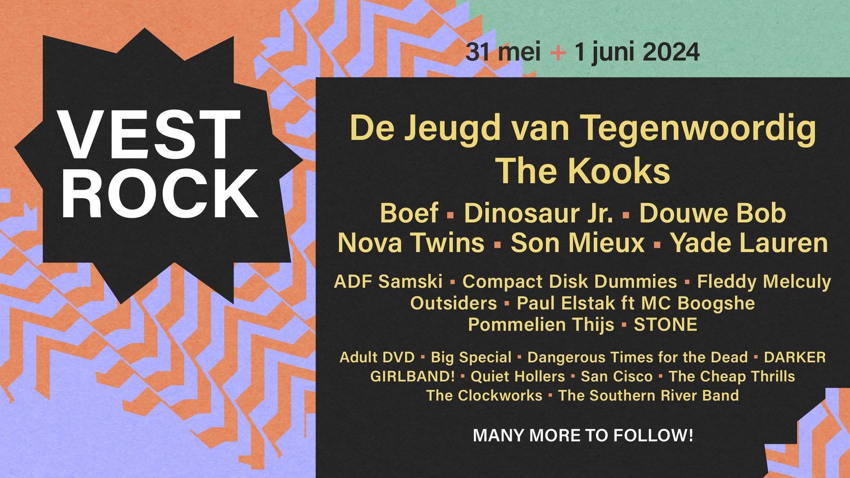 VESTROCK festival vindt plaats op een prachtig eiland in de stadsgracht van de Middeleeuwse vestingstad Hulst (Zeeuws-Vlaanderen). Op vrijdag 31 mei 2024 en zaterdag 1 juni 2024 kan je er naar de dertiende editie.  Het festival had reeds aangekondigd dat Dinosaur Jr., STONE, Compact Disk Dummies, The Clockworks, Big Special, San Cisco, Quiet Hollers, Son Mieux, De Jeugd Van Tegenwoordig, Paul Elstak feat. Mc Boogshe, Pommelien Thijs, The Cheap Thrills, DARKER, Dangerous Times For The Dead, Adult DVD, Fleddy Melculy, ADF Samski, Yade Lauren, Douwe Bob en Boef zullen afzakken naar de Zeeuwse vestingstad.