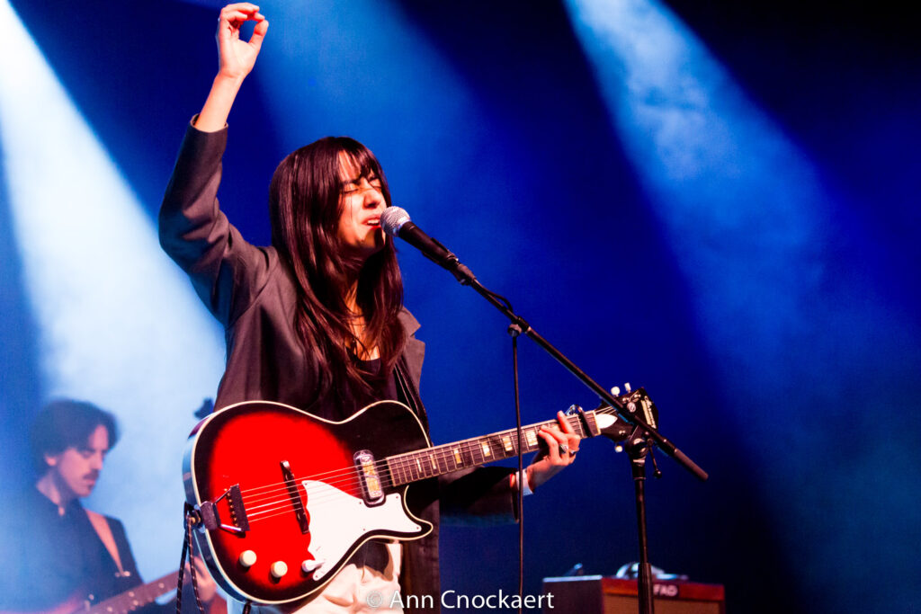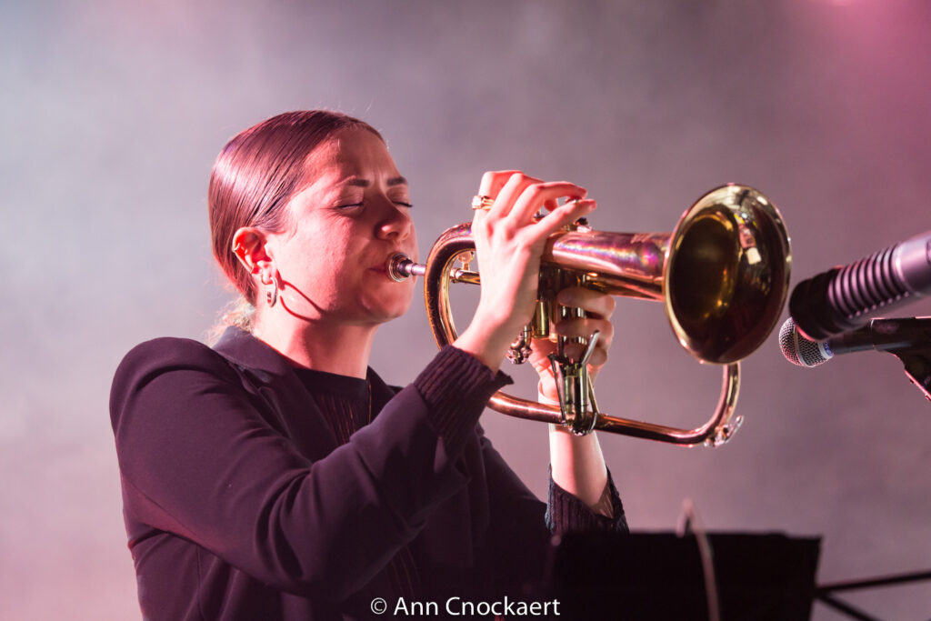 De muziek voelde even weerloos als Bianca’s stem, maar hield het geheel ook recht. Alsof de band zei: val maar, ik vang je wel. Er zit een dromerige verteltoon in haar performance. Ze schildert met woorden. Geen rechte lijnen, maar waterverf die uitloopt in hoopgevende melancholie. Halverwege tilde de trompet het geheel wat op. Niet luid, zodat het publiek geboeid stil bleef hangen in de klank. Bianca Steck bewees vanavond dat broosheid geen breuklijn is, maar een fundament.