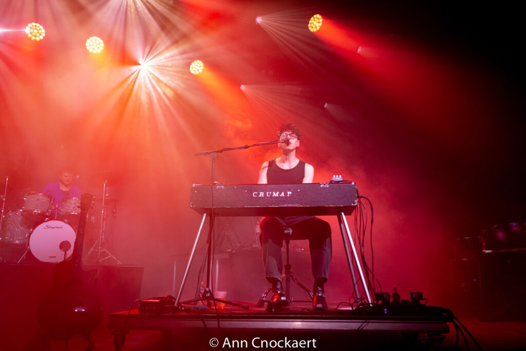 Vanaf de eerste beat was het raak. Pulserende baslijnen, hoekige gitaren en synths die recht uit een neon-doordrenkte eighties-nacht leken te komen. Postpunk met dansbenen. Geen stijve zwarte jassen in de zaal, maar heupen die het ritme volgden. Frontman Karel Piot bleek even praatgraag als bezeten.