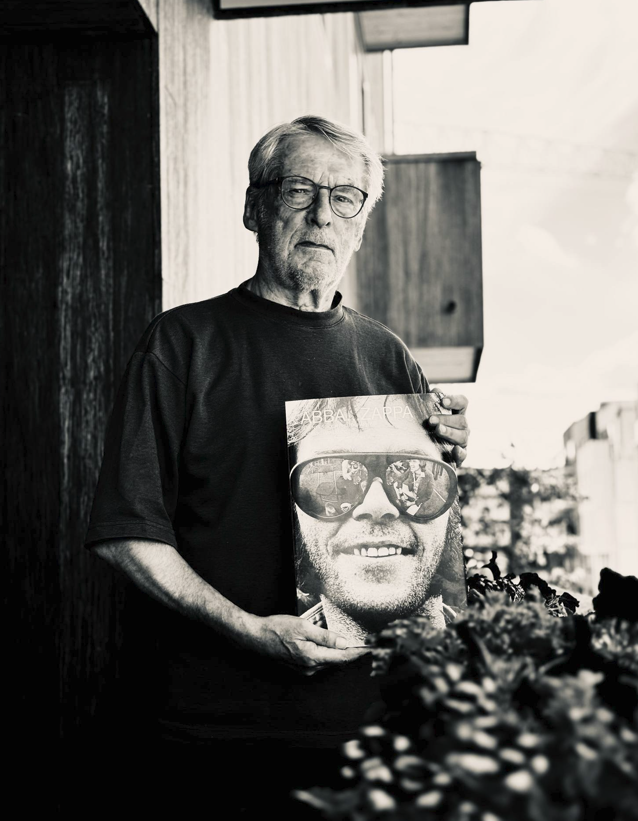 Amsterdam 2025. Ik maak op mijn beurt een foto van Gijsbert Hanekroot. Hij bekijkt de foto op mijn iPhone, knikt goedkeurend. ‘Maar wel omzetten naar zwart-wit.’ Toestanden !