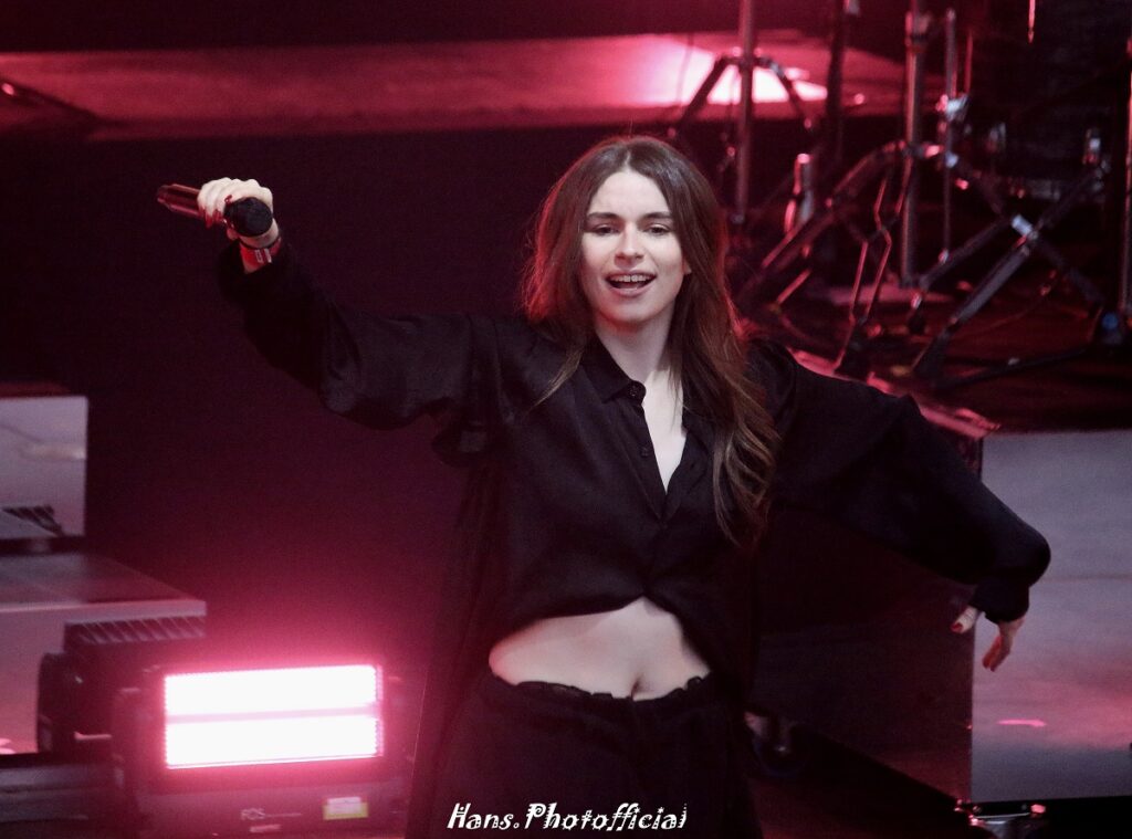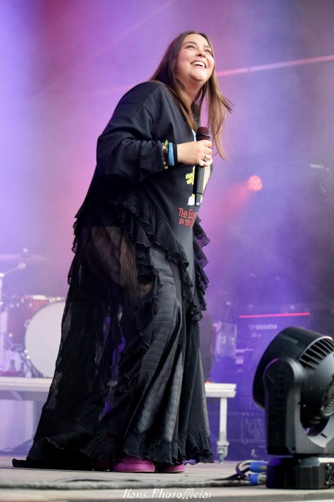 Headliner op de Fountain Stage was een zangeres met een stem uit de duizend. Adèle Castillon du Perron stond al in een recent verleden op het podium van de Orangerie, op 6 maart 2024 om precies te zijn. Ze heeft dus indruk gemaakt. De nog maar 23-jarige brunette uit Angers/Nantes was tot 2021 in Frankrijk een vedette als actrice en zangeres van het hyperpopulaire Vidéoclub. Ze ging na covid solo en de massahysterie is een feit. Haar motto is “Hating pop music doesn’t make you deep”. Het concert opende opende sterk met Sensations, Alabama en de slow Gabrielle. En dan liep het grondig mis. Geen geluid meer. Om de één of andere reden leek ons dit ‘part of the show’.