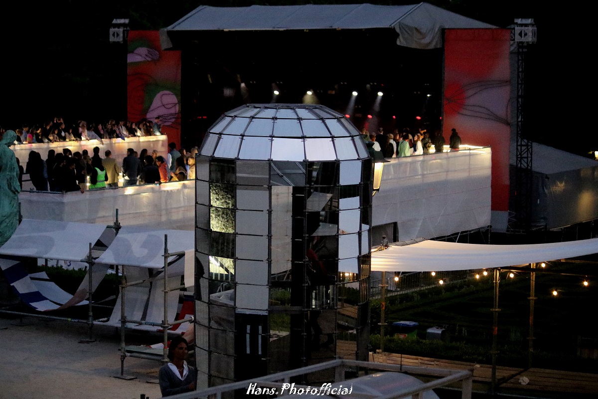Of zijn er toch opvallend veel festivalgangers voor Miki gekomen? De wachtrij aan de Orangerie liep tot aan de rotonde en Castillon moest nog tien minuten vol zingen. Complete chaos ondertussen rond de Orangerie en de security moest het volk druppelsgewijs binnenlaten om het niet uit de hand te doen lopen. Het was ons een raadsel waarom de mensen elkaar bijna verpletterden om toch maar een goede plek te bemachtigen. Buiten een opblaasbare dinosaurus was er op zich weinig te zien.