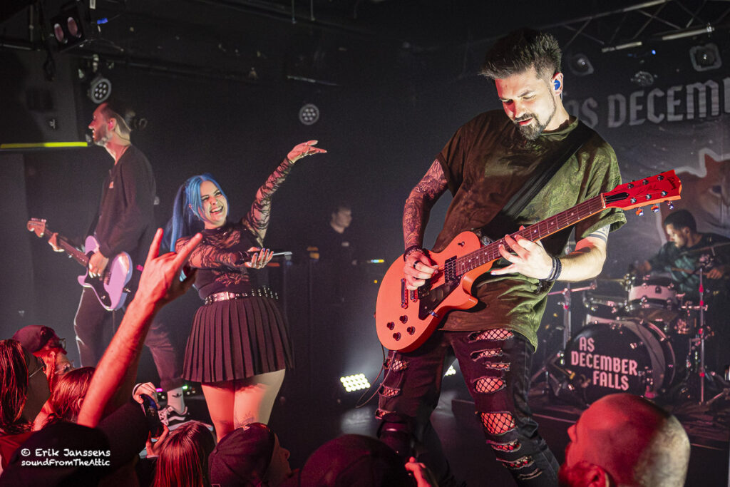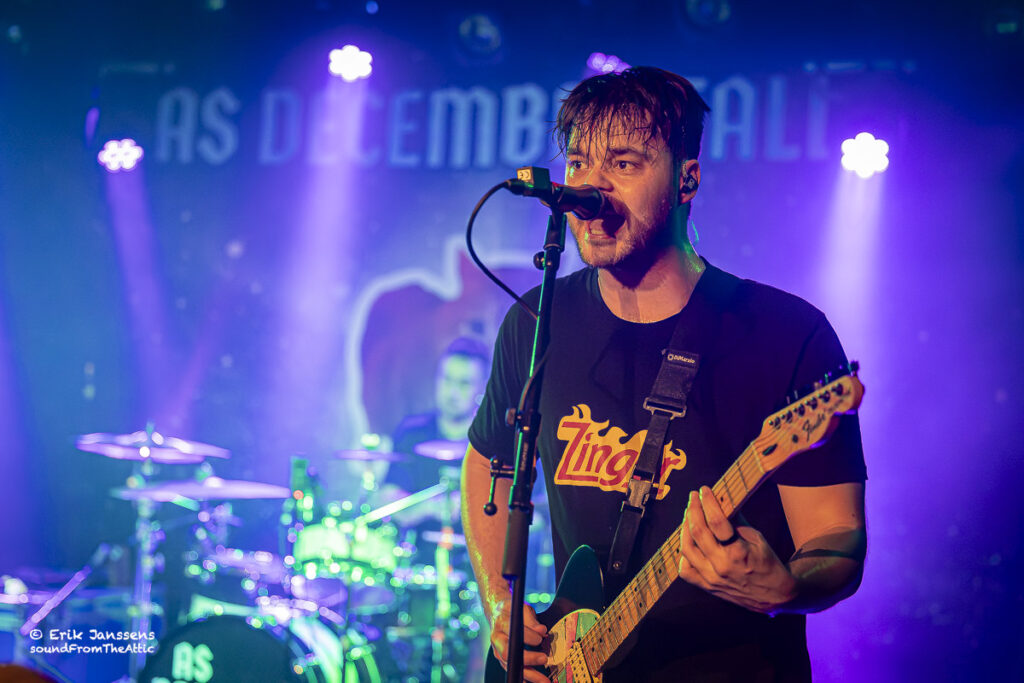 De meerderheid van het publiek kwam duidelijk voor As December Falls. De groep ontstond in 2014 toen bassist Timmy Francis via sociale media op zoek ging naar gelijkgestemde muzikanten en zo zangeres Bethany Hunter Jiménez ontmoette. Samen met gitarist Ande Hunter Jiménez en drummer Lukas James vormt ze de vaste kern van de band, die een frisse, vrouwelijke stem brengt in het doorgaans door mannen gedomineerde poppunkgenre.