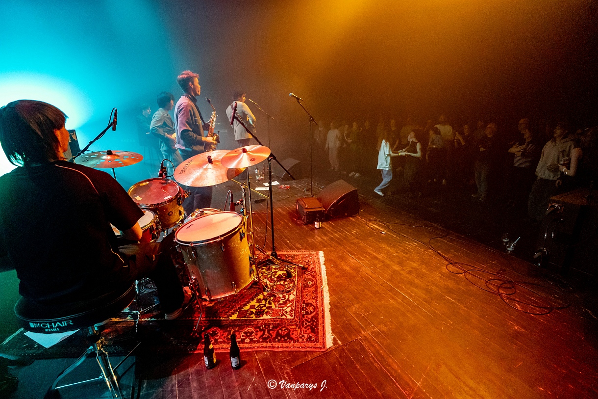 Twee nummers later zaten de funky vibes van de band er goed in, aangedreven door de ritmesectie van Kawien Choi en Arne Theunissen. Het stemgeluid van Lars deed er meteen nog een schepje bovenop. Niet alleen de stoelen, maar ook het publiek was ingewisseld en de eerste danspasjes werden enthousiast gezet door deze jonge fans. Ook hier kregen we visuals, maar deze werden ter plaatse live gemaakt of gemixt. Vraag ons niet hoe, maar het was een mooie meerwaarde.