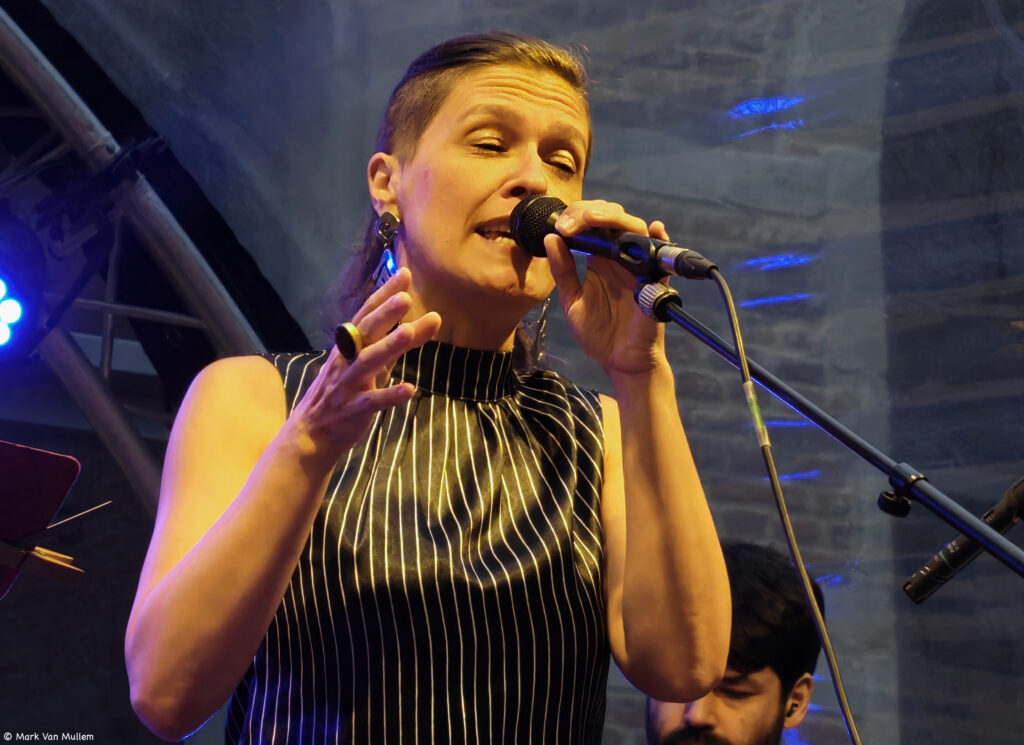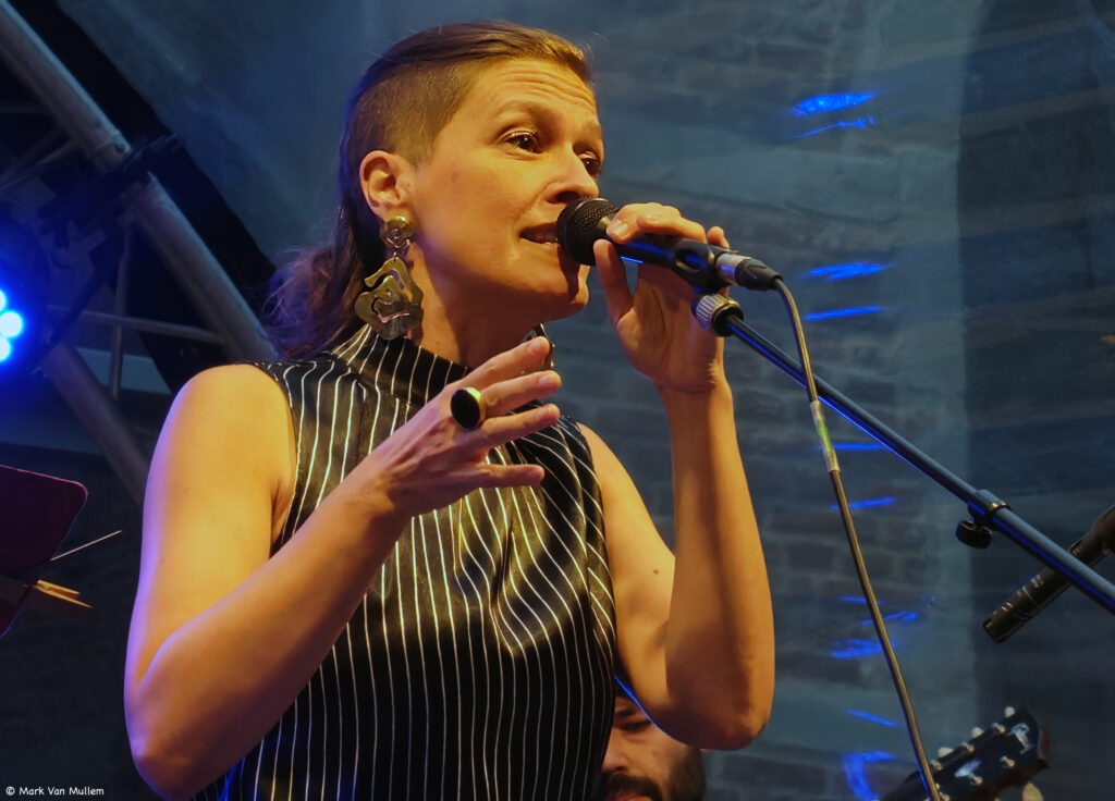 “Het is volop zomer, en daarom bengen wij nu een typisch winterlied”, grapte De Roovere, nadat ze ons had verwelkomd. De Eerste Sneeuw van Jan De Wilde (eigenlijk van Lieven Tavernier), klonk nooit eerder zo zomers en zuiders. Met prachtig bandoneonspel van Stijn Bettens, de sax van Vaganée die als machtige tweede stem klonk. En er waren natuurlijk ook de zachte vocalen van De Roovere. Het had wel iets aparts, mee-hummen op een winterlied dat zomers klinkt.