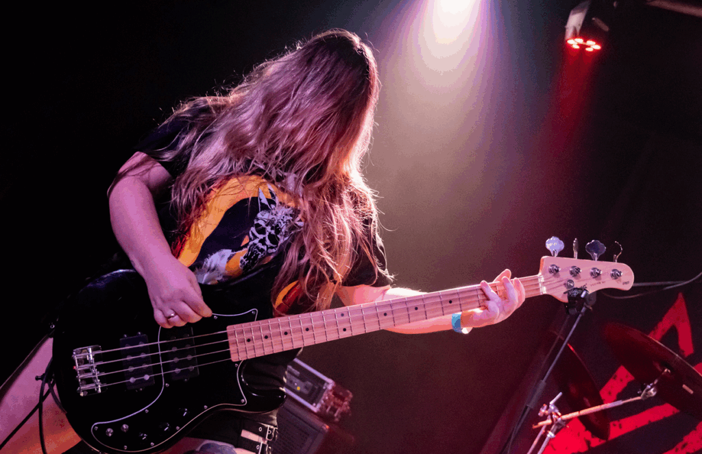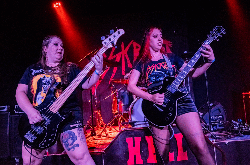 Een uur lang knalde het in Club Hell, het tweede concert van Eskröta’s tour in Europa. “Het is onze eerste keer in Europa dus we zijn wel nog wat nerveus”, zei frontvrouw Yasmin bij het begin van de show, maar daar was helemaal niets van te merken, integendeel! Yasmin schreeuwde de longen uit haar lijf terwijl ze de ene riff na de andere uit haar gitaar liet knallen en afwisselde met schitterende solo’s, bassiste Tamy ramde op haar basgitaar en deed backing vocals alsof haar leven ervan af hing, Jhon ging op zijn drums tekeer als een wilde gek. Als de duivel ergens in ‘hell’ was, schrok die zich allicht een hoedje.