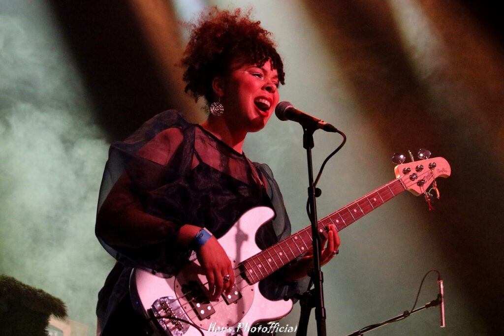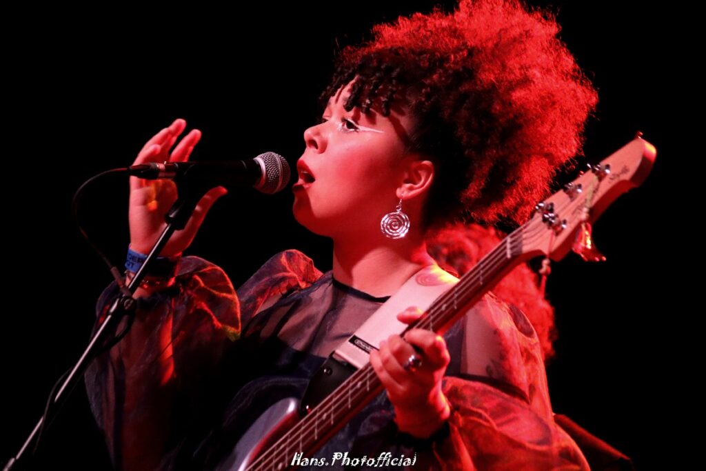Caro is overigens een begenadigde zangeres met een vrolijke blik die een pak toonladders de baas kan. I Want You To Feel It kwam als tweede langs en het funkte volgens de leer van Say She She. “Hold Me hold me. Please don’t let go of me”. Caro zong heel overtuigend en de band was strak ingespeeld en dat was nodig want hoe fluks en dartel de nummers ook voorbij gleden, de tempowisselingen en bruuske koerswijzigingen maakten het geheel ongemeen boeiend. We snappen de Sound Track uitslag volledig. Michiel toverde heerlijke riffs tevoorschijn en we waren al aan minuut 25 in een soulvolle gloed aanbeland voor we er erg in hadden.