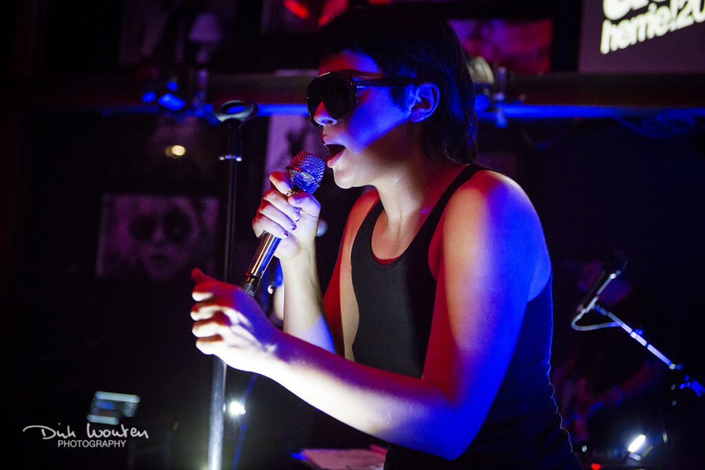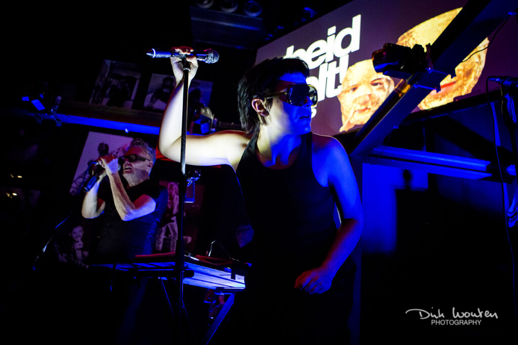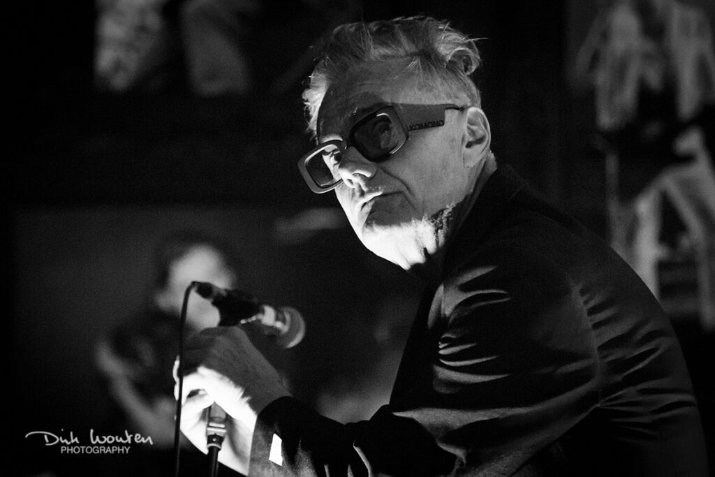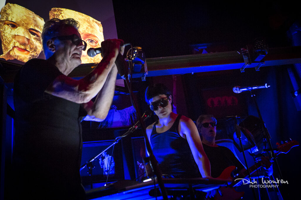 Ook de nieuwe songs putten nog steeds uit de Stop making sense-vibe met simplificado-tekstlijnen die, bij voldoende herhaling impact krijgen. “Pom-pom-pom stompzinnigheid”, “het proletariaat wil laminaat” of “happy is geen Nederlands” zijn geen vlotbekkende oneliners maar worden tot mantra’s verheven en werken aanstekelijk. Nee, dit soort zwart tegendraads Nederlands is nog niet versleten. De Vlaamse oertrack van het genre Rendez-vous wordt halverwege de set door de mangel gehaald en mijn kop is toe. Inderdaad, Talking Heads is nooit ver weg, en de pyscho killer-mashup met Death Disco zet de dansvloer in gang. Ondertussen hebben de drumbeats en synths de bovenhand. Toch wel opmerkelijk voor een band met 2 gitaristen op het podium.
