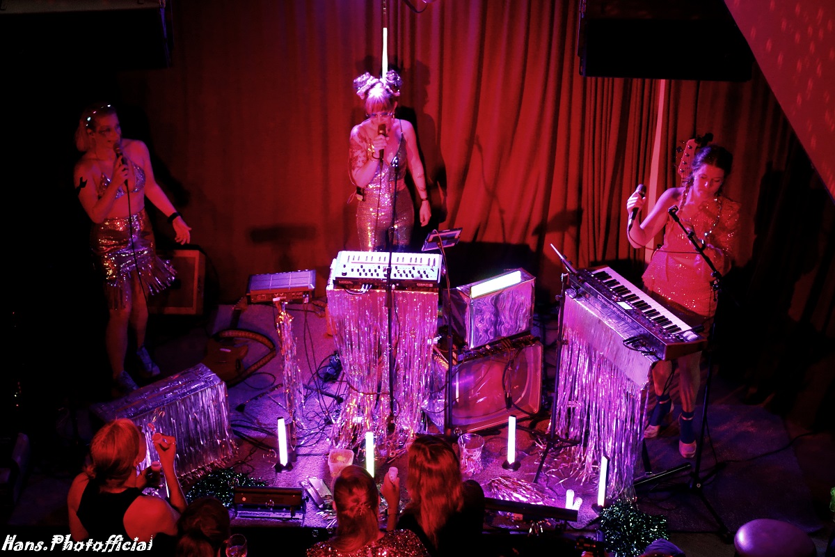 En of er gevlogen werd! Met de megafoon in de hand was Naomi orkestmeester voor de cursus meezingen voor durvers. Dit slotnummer van de ep was ook het moment waarop de drie heupwiegend een staaltje choreografie etaleerden. Nog meer gejoel was hun deel. We stelden ook vast dat Jana met scherp uit haar zeepbellenpistool schiet. Waarover de song gaat? Iedere vrouw in de zaal kent wel een man die alle zuurstof uit de vriendschap haalt door zich als een narcist en klootzak te gedragen. “We all know you’re a narcissistic asshole” werd uit alle dorstige kelen meegebruld. De beat in het slot neigde naar kermismuziek en een rupsbaan, maar we hadden genoeg ‘geruimtevaard’.