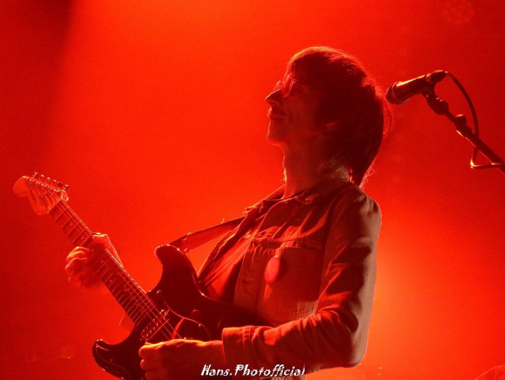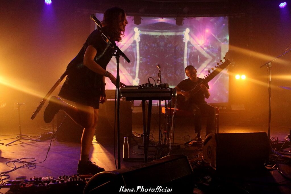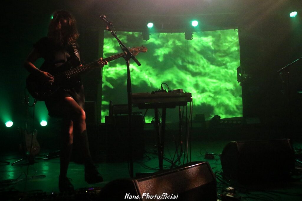 La Source werd door Julie ingeleid en moet ons er aan herinneren dat we in deze tijden van wereldwanhoop moeten vertrouwen op de bron des levens, de wil van de mens om te doen waar machines nooit zullen in slagen. Pierre voegde minnetjes toe dat ze niets tegen machines hebben… Ook voor Vertige werd een gastmuzikant opgevoerd, en dan nog op sitar. Chaton Laveur heeft van deze release show een uniek spektakel gemaakt dat tot in de details klopte en imponeerde. Fantasia was ook live de klepper die het op plaat al was. Denk aan Suuns en laat je meedrijven in een donker fantasierijk wereldje waarin Julie en Pierre het mooie weer maken. Deze live uitvoering klonk ronduit geniaal en de helicopterachtige loops zetten een onheilspellend slot in. Wat een nummer!