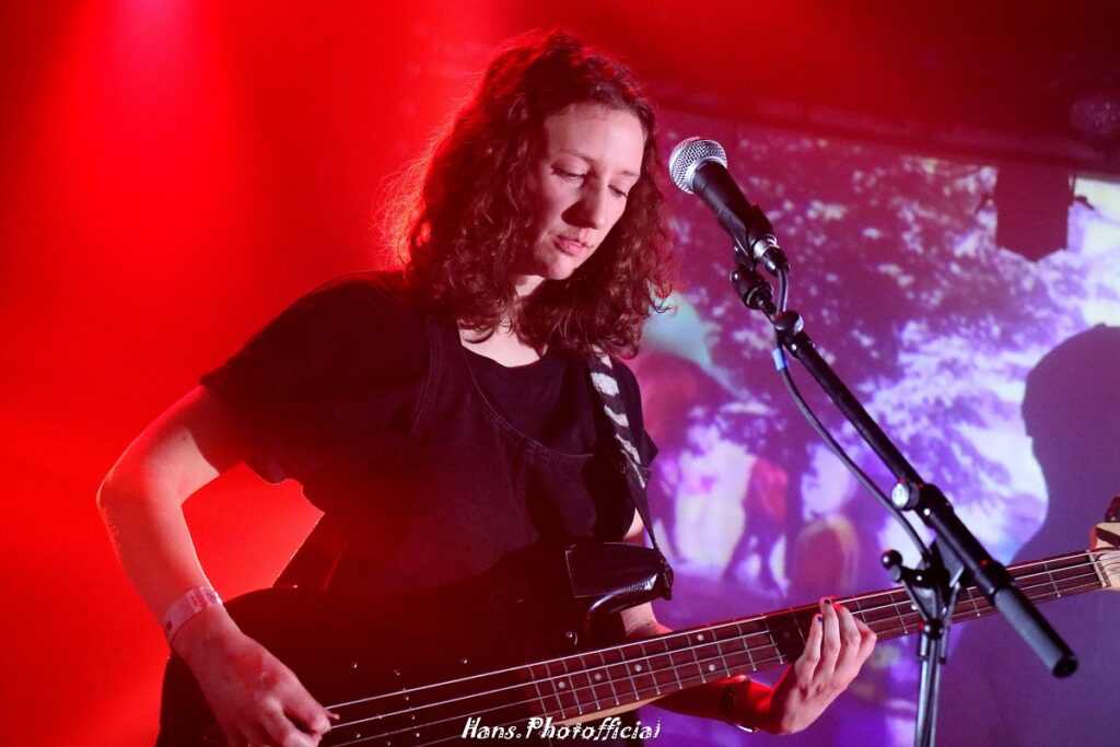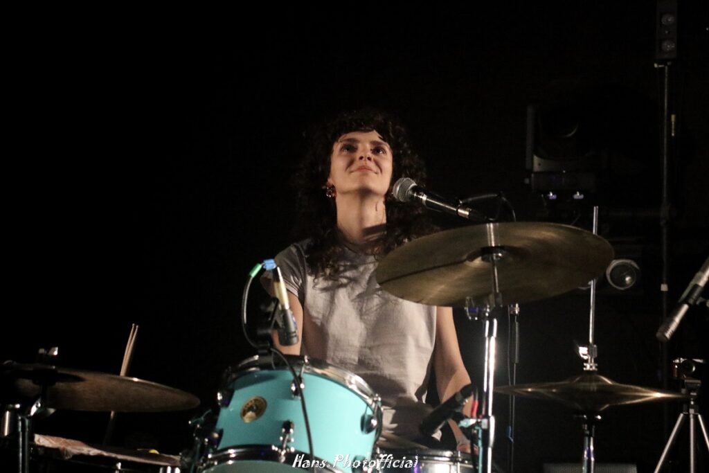 Het enige nummer zonder de visuals werd op bas versterkt door Julien Trousson, de zwarte monoliet van Gros Coeur. Nuit werd door Julie gezongen in de stijl van Kazu Makino en Trousson deed de backings. Het werd een vreemde eend in de Labyrinthe-bijt want het nummer werd uit hun debuutplaat geplukt. Geen gitaar of synths bij Julie tijdens Brise, Brume dat met een heerlijk Automatic-achtige loop werd ingezet. Ondertussen werd de Rotonde in het blauw op de backdrop vereeuwigd, wat een uitermate leuk effect gaf. Iemand riep “quel talent”. Terechte kreet! Pierre nam het volgende nummer op zang over, typerende vintage slome krautrock met knetterende versterkers.