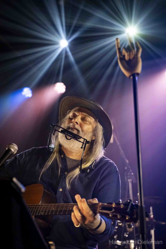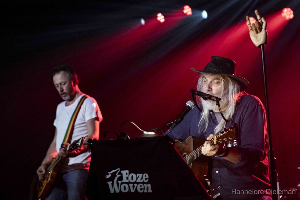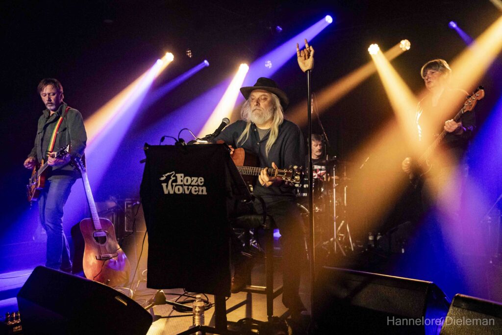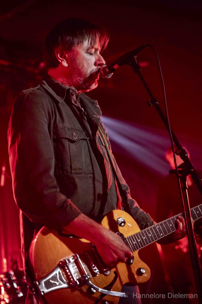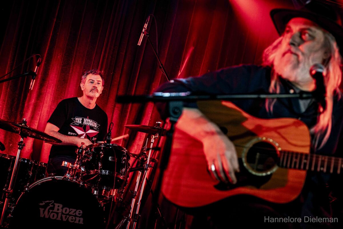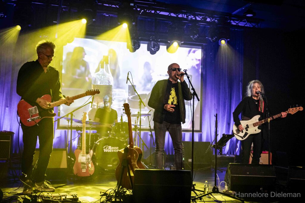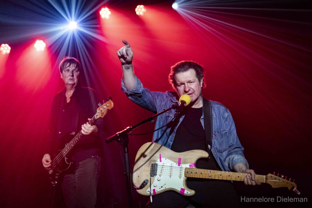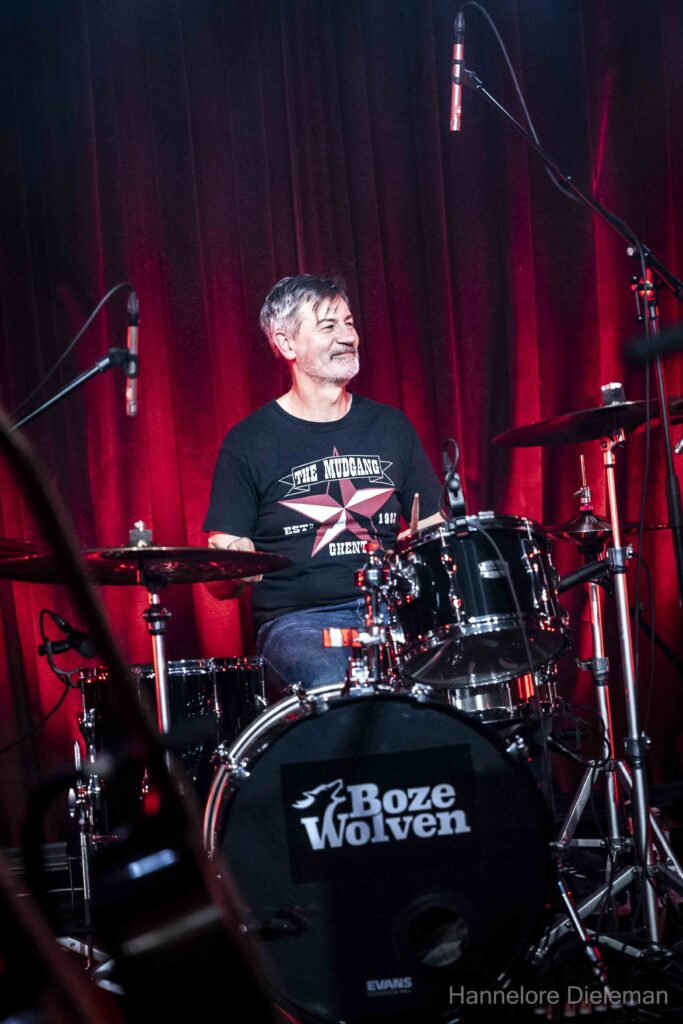 De overtuiging op het podium, met een kwinkslag tussendoor, de songs en het meezingen door het publiek creëerden een fijne verbinding in de zaal. Wie was aanwezig op het allereerste optreden van Gorky in de Hullabaloo in Gent? Een vrouw uit het publiek, zo bleek. Ook Geert Bonne was er toen bij. Hij drumde het hele optreden solide en genoot in alle bescheidenheid.
