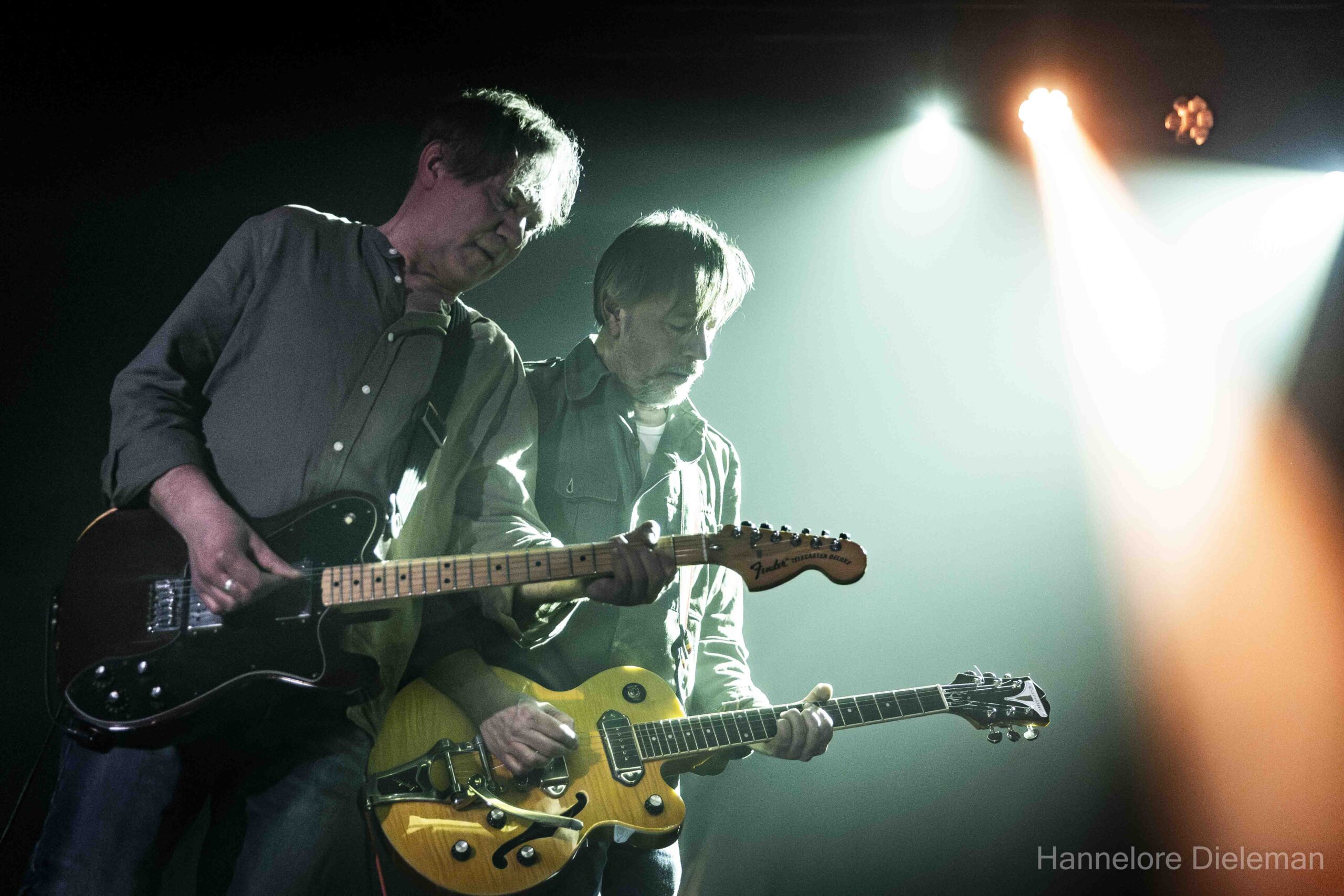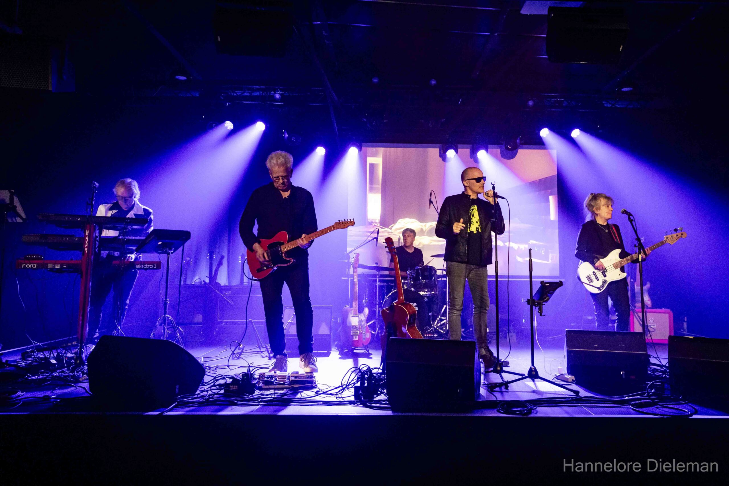 Piet Geldhof en Philippe Gunst (ook Fragment) wisselden voor de gelegenheid van instrument met de laatste nu op bas. Met Piet Geldhof, Peter Ysabie (Pink Flowers, voet in roze gips), Luc Van den Berghe (The Mudgang) en Michel Goessens (Goes en Goes) stonden/zaten er bijwijlen vier gitaren op een rij. Misschien wat veel van het goede om een trio te eren, maar het leverde in de stevigere nummers een strakke wall of sound op, die Ik Word Oud, Bloed Zweet en Tranen of Hollywood tot nieuw leven bracht. The Scene-bassiste Emilie Blom beleefde met een big smile de nineties opnieuw vanuit het publiek.