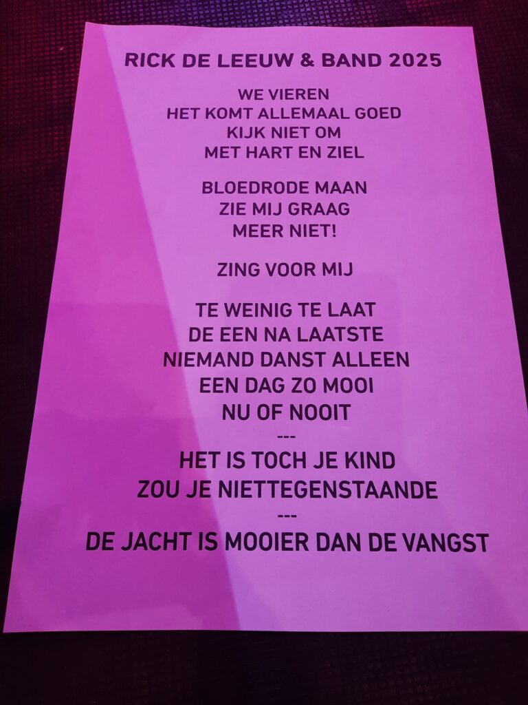 Rick De Leeuw is en blijft een rocker zoals we hem altijd hebben gekend. En hij is ook schrijver, presentator, dichter en zoveel meer. Hij weet zich te omringen met de juiste muzikanten, die hem op het podium verder drijven dan wat hij vooraf kan bedenken. En daar is hij enorm dankbaar voor.