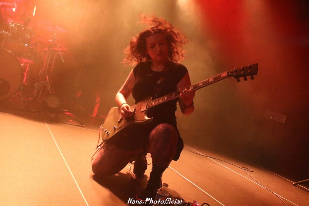 Het is pas af en toe – als Jenna en Ari elkaar gehurkt aankijken – dat ze lijken te beseffen dat er een publiek voor hen staat. Iron Gate opende de set en paste als gegoten bij de podiumsetting met de backdrop die als een ijzeren poort leek te fungeren. De zangstijl was uitgesproken ‘schoenstaarderij’ maar de riffs waren dodelijk en beenhard.