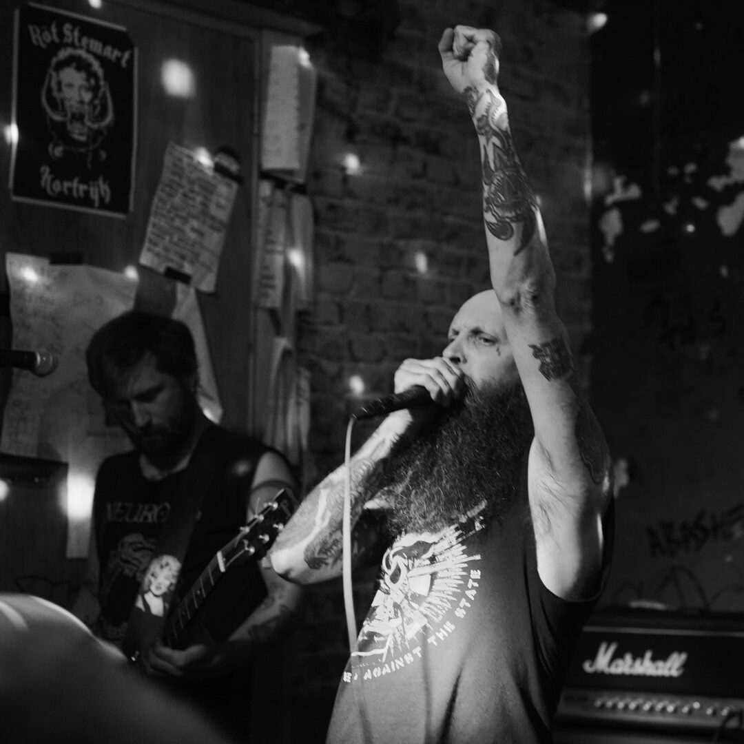 Kort soundchecken, alles net een beetje te luid naar onze zin, maar eenmaal de show begon hadden ze dat ook zelf door en was het geluid meer dan prima. Het gros van de nummers komt traag op gang, een beetje sludgy eigenlijk. Traag, slepend en hard om dan plotsklaps een paar versnellingen hoger te schakelen naar d-beat hardcore punk waarbij geregeld wat noise-erupties tevoorschijn kropen.