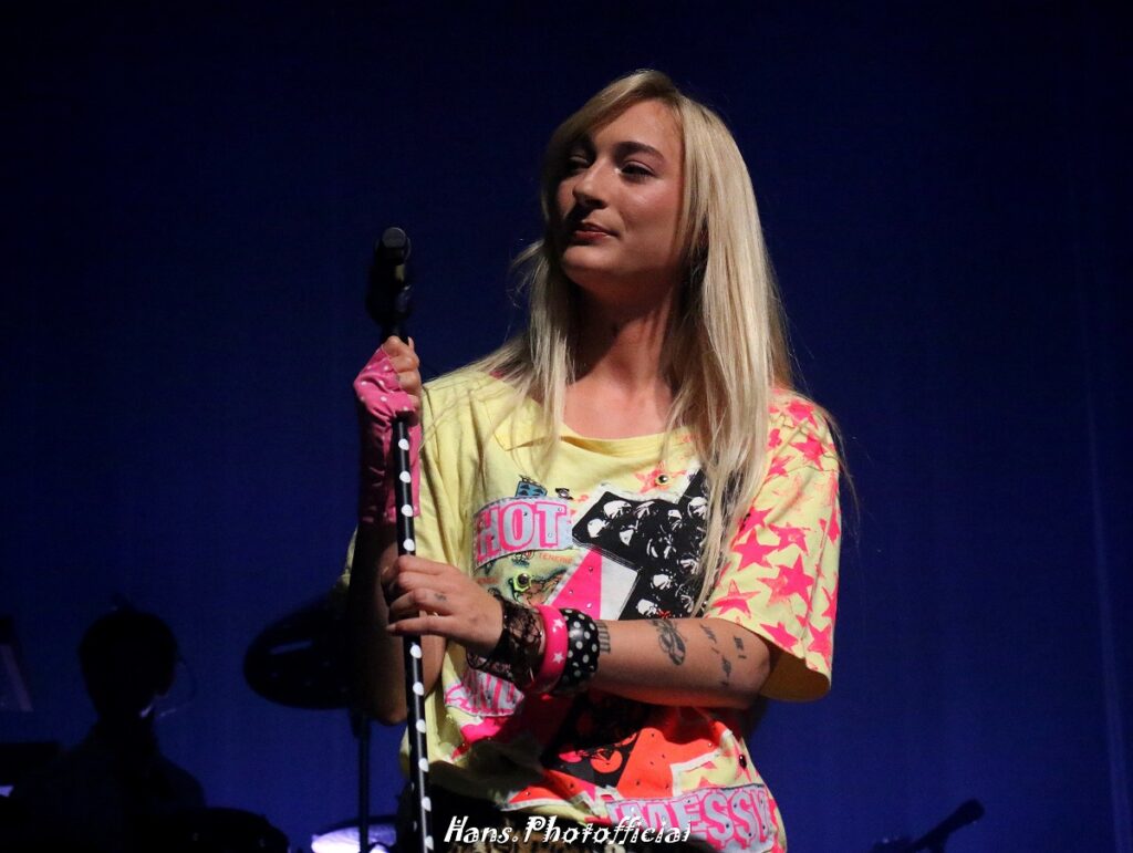De ‘Pop Icons’ hadden trouwkleren met een kwinkslag aangetrokken en kwamen gesluierd het podium op voor een zinderende apotheose. Vooral Stien was hilarisch en echt wel heerlijk uitgedost. Het was meteen ook het sein voor de dubbele bezetting en uitvoering van een paar tracks zoals Nooit Meer Spijt. Dubbele bezetting? Jawel, twee synths, twee drummers en evenveel bassisten en gitaristen. Pieteke Dik en Yvette Terpstra mochten vaker de voorgrond afschuimen. Tekstmatig past de ‘nooit meer spijt’ perfect bij ‘nu heb ik spijt’ van het gloednieuwe Offline. Het mag gerust geweten zijn, de 4 nieuwe tracks op de gezamenlijke ep brandden ongenadig en de gloed voelde super goed. Beiden kregen nog hun individueel momentje met de knallers Mijn Haren Ruiken Naar Vuur en Ik Wil Dansen maar iedereen leek te wachten op de laatste twee knallers.