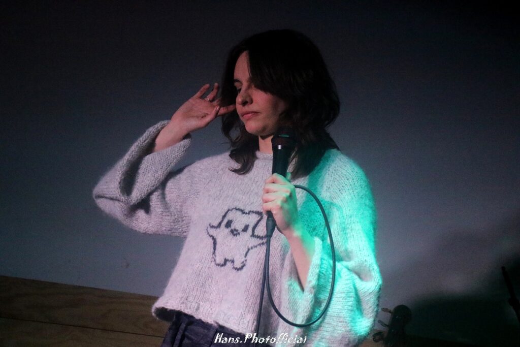 Stien Bovijn heet Piffy in het dagelijkse leven, we zagen haar bijna 7 jaar geleden al bij Sweats waarin ze de zang verdeelde met Lotte Lauwers. Dit jaar was ze één van de finalistes van De Nieuwe Lichting en we hebben geen moeite dat bevattelijk te vinden. Piffy opende met haar rustigste nummer en koppelde daar meteen een song aan waarvoor ze naar eigen zeggen nog een schrijver zocht voor een ontbrekende strofe. “In het begin van een optreden moet ik mijn beentjes nog losmaken maar gelukkig zit mijn onderbroek waar ze zitten moet.” En dat was onder haar skibroek die heerlijk matchte met de crocks. Ze had het schaars opgekomen publiek wel meteen mee want op eenvoudig verzoek kwam iedereen 2 meter dichter de avond in. Piffy zong dan een liedje over iets dat ze heel leuk vindt: seks.